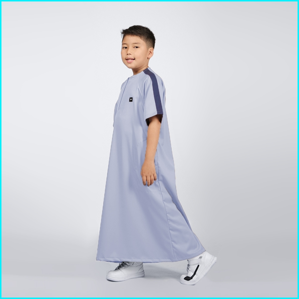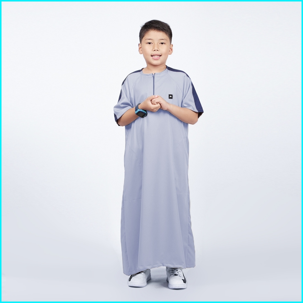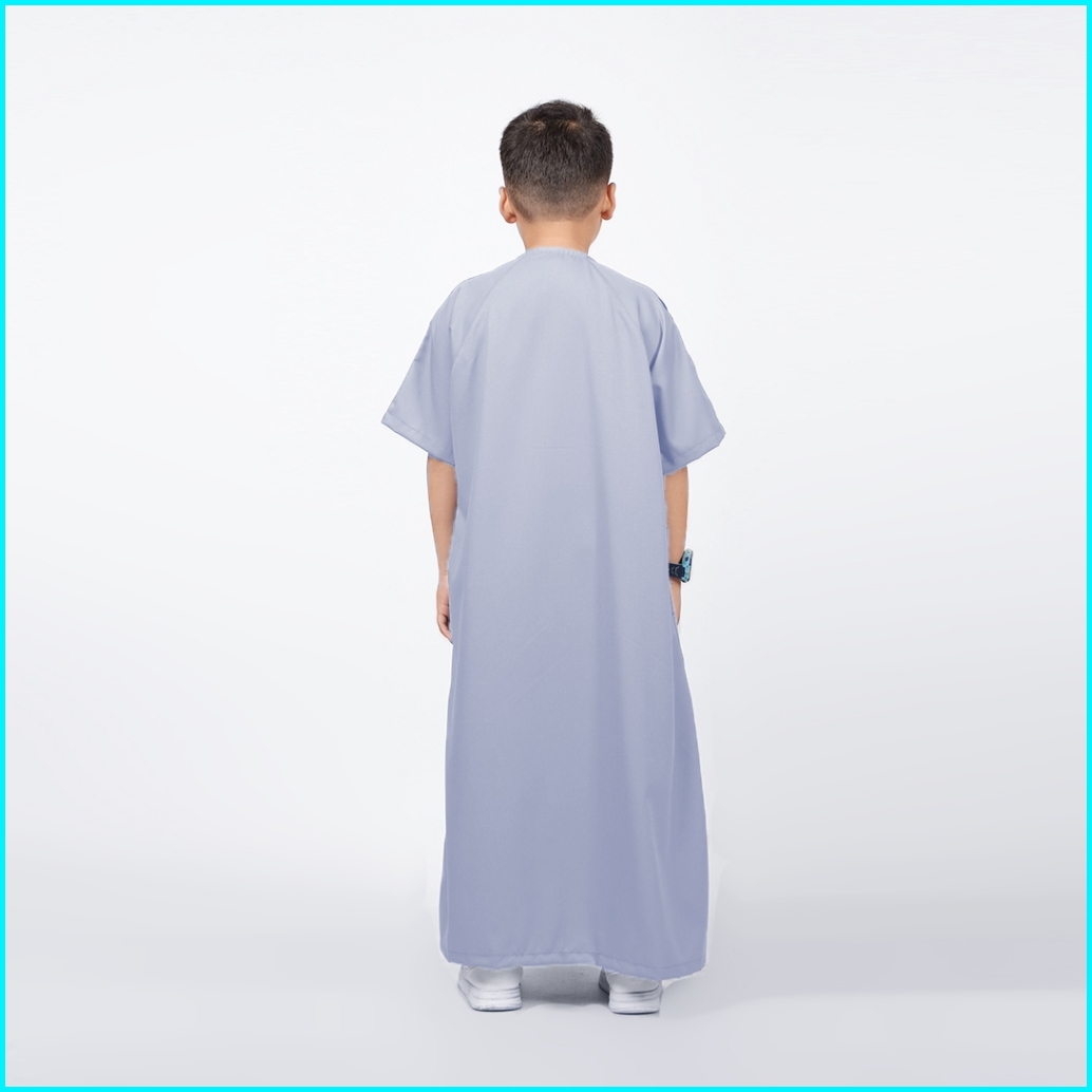 Gamis Anak Laki-laki Polos Lengan Pendek Light Grey Jubah Ummah Kids Khoirummah