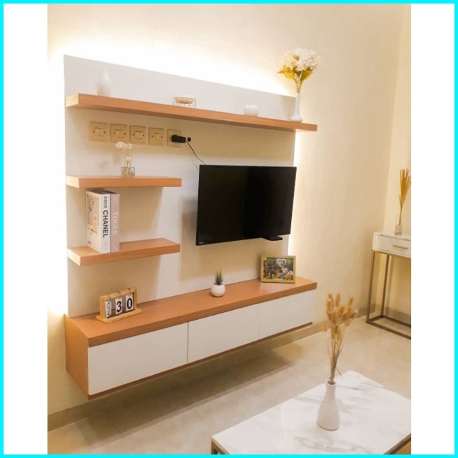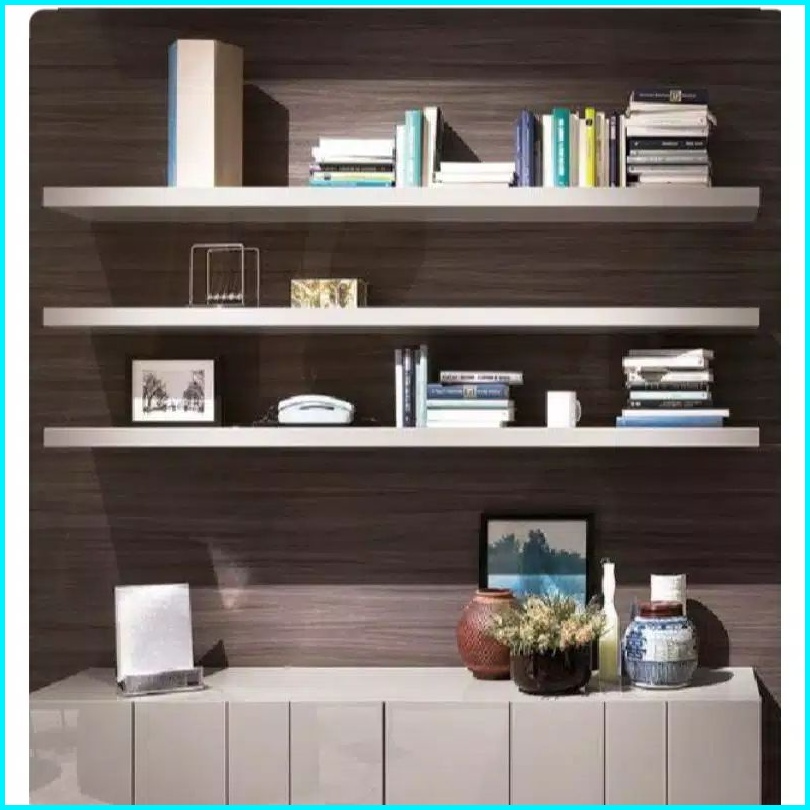 Rak Hiasan Dekorasi Ambalan Dinding 120x25 Buku Kosmetik Tempat Bumbu Dapur Sepatu Kamar Kayu Susun