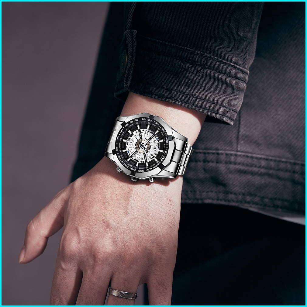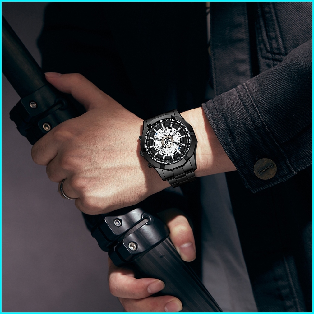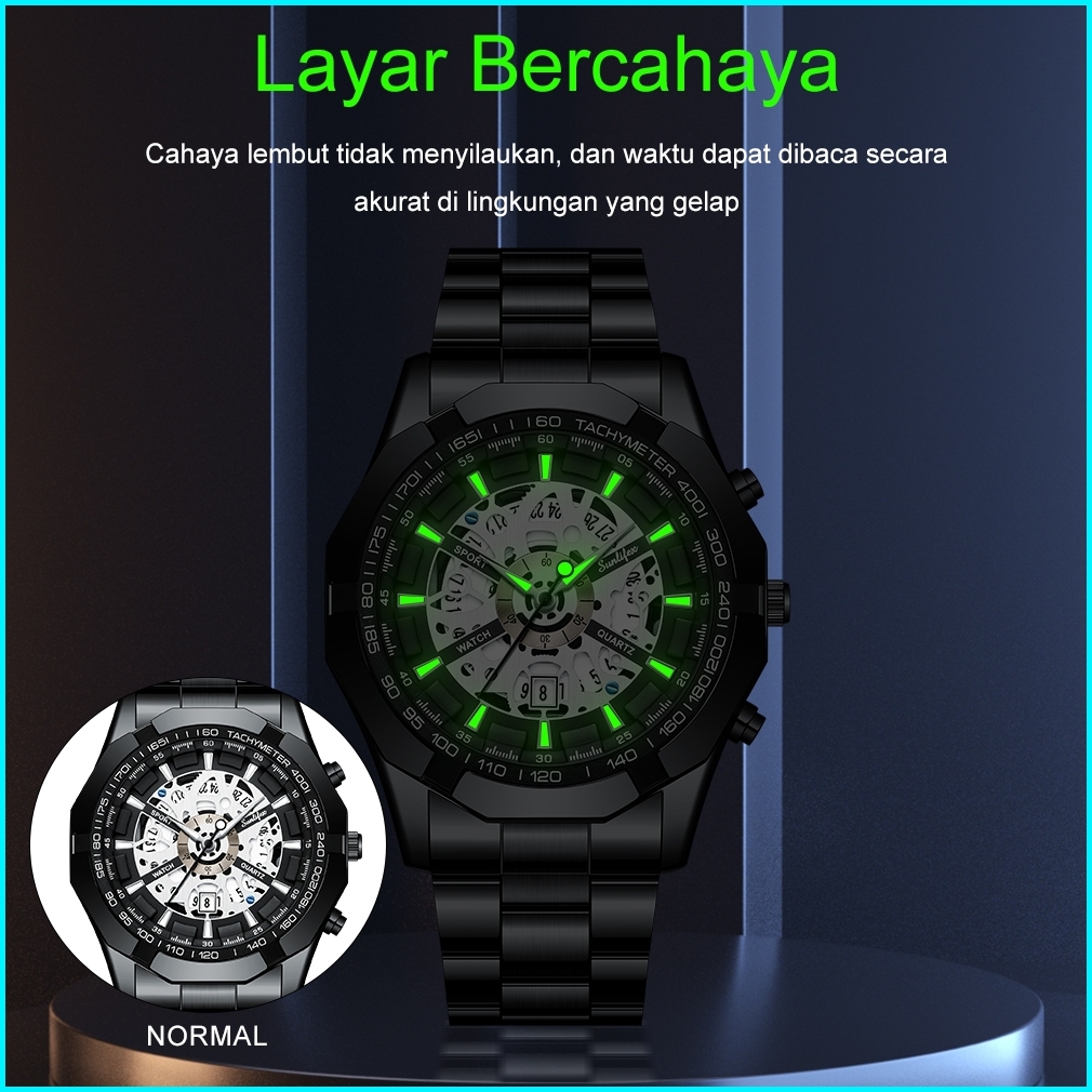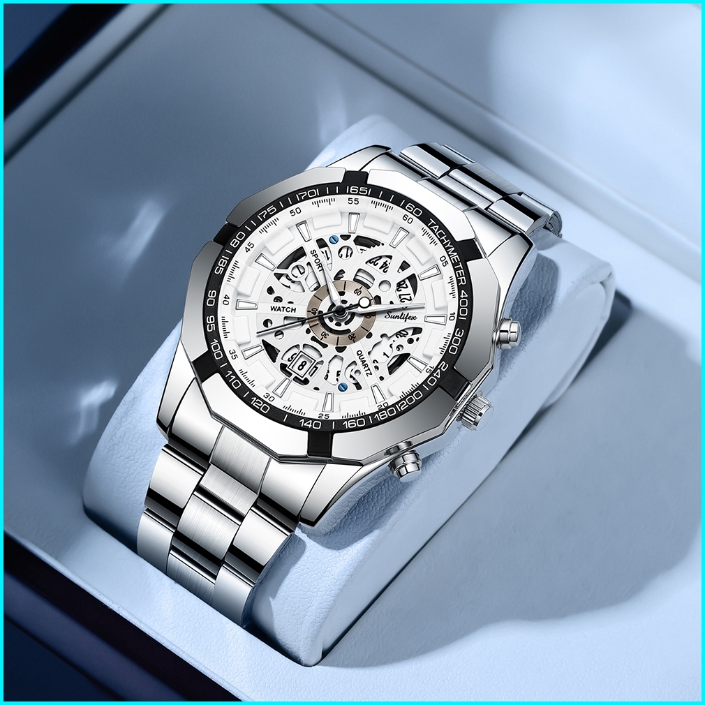 Sunlifex 9096 Jam Tangan Pria Tali Stainless Steel Anti Air Kalender Olahraga Keren New Watch Cowok
