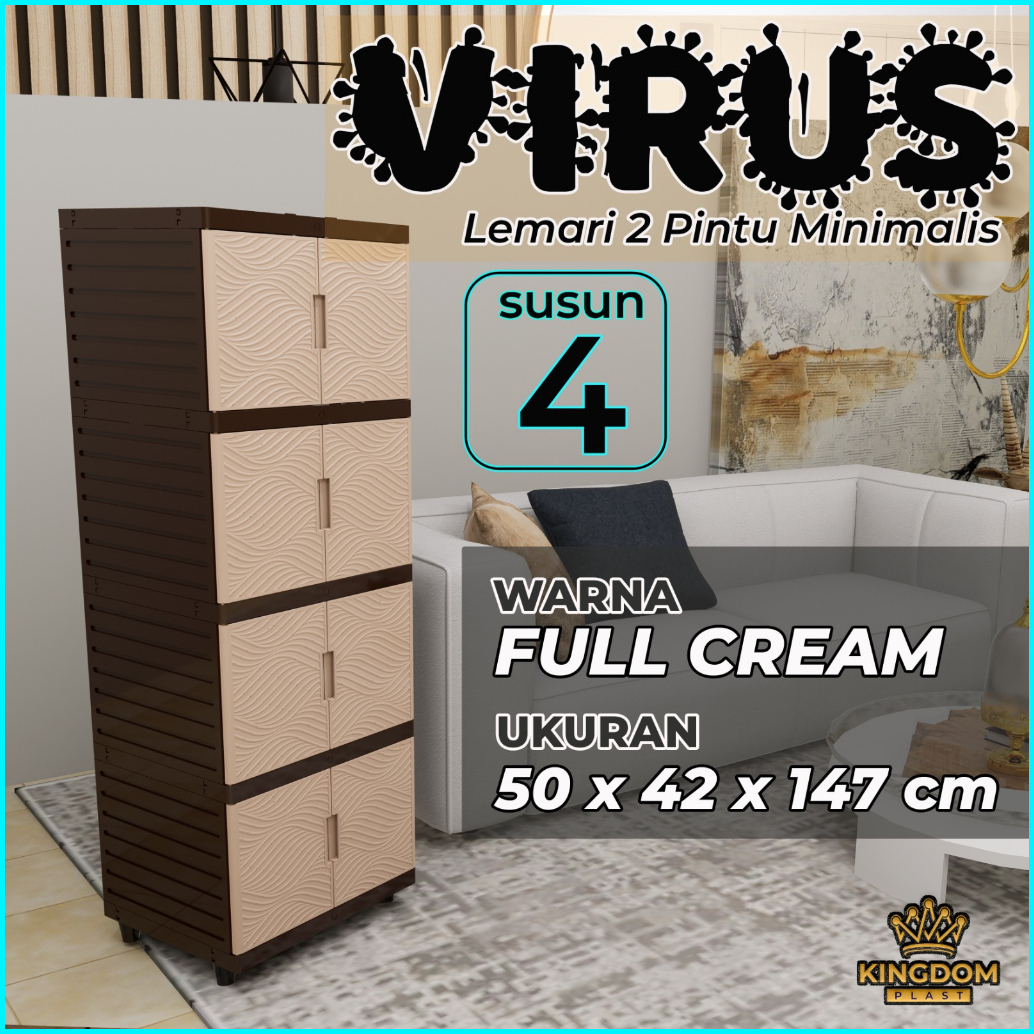 Lemari Pakaian Baju Plastik Virus Kingdom 2 3 4 5 Susun Cream Putih Murah