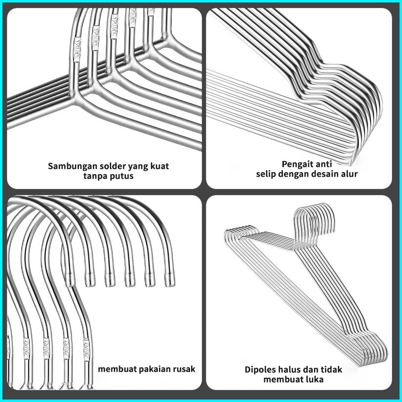 Hanger Baju Stainless Tebal 3mm Gantungan Baju 1 Paket 10 Buah 32 42 45cm