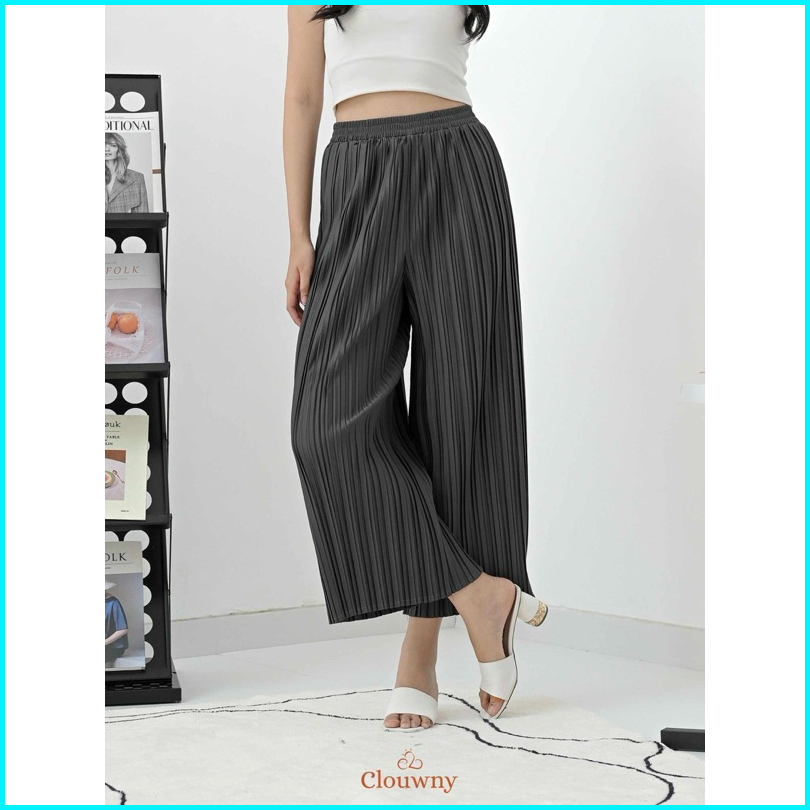 Clouwny Rain Pleats Kulot Celana Kulot Wanita Fashion Wanita