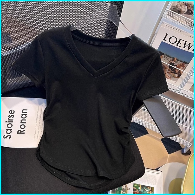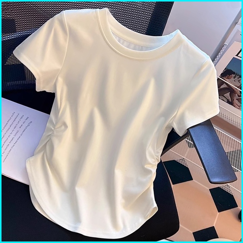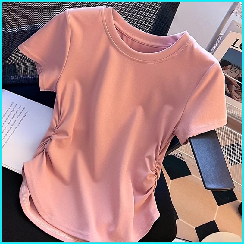T-shirt Wanita Musim Panas Yang Memamerkan Pusar Manis T-shirt Lengan Pendek Warna Polos Atasan Kasual Fashion Korea Cro