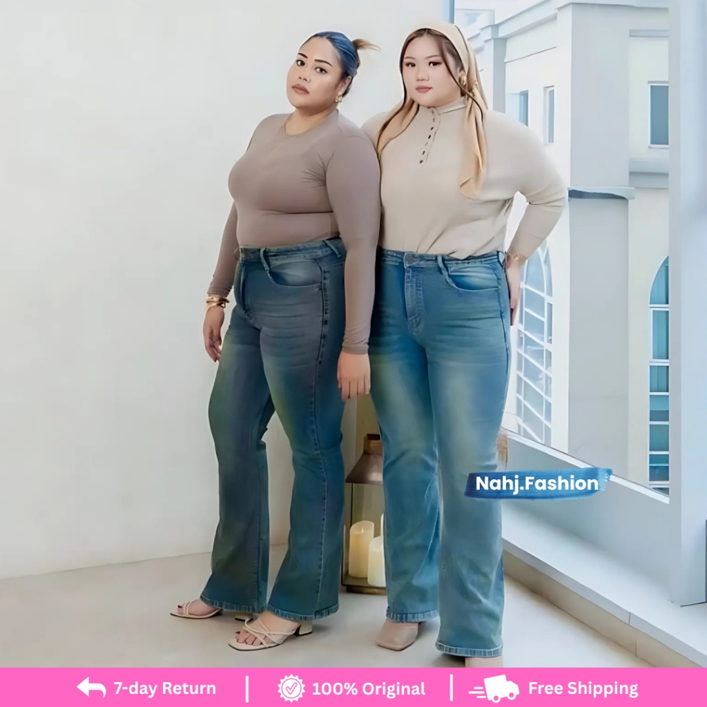 HW Cutbray Jeans Retro Whisker Wanita Jumbo Big Size 3538 3942 Celana Panjang Cutbray Wanita Strechy Melar Korean Style
