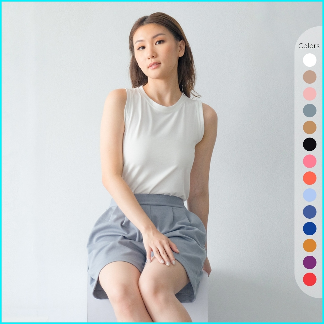 Isla Clau Top Crewneck - Sleeveless T-shirt - Tanktop Kekinian - Inner Tanpa Lengan - Kaos Polos