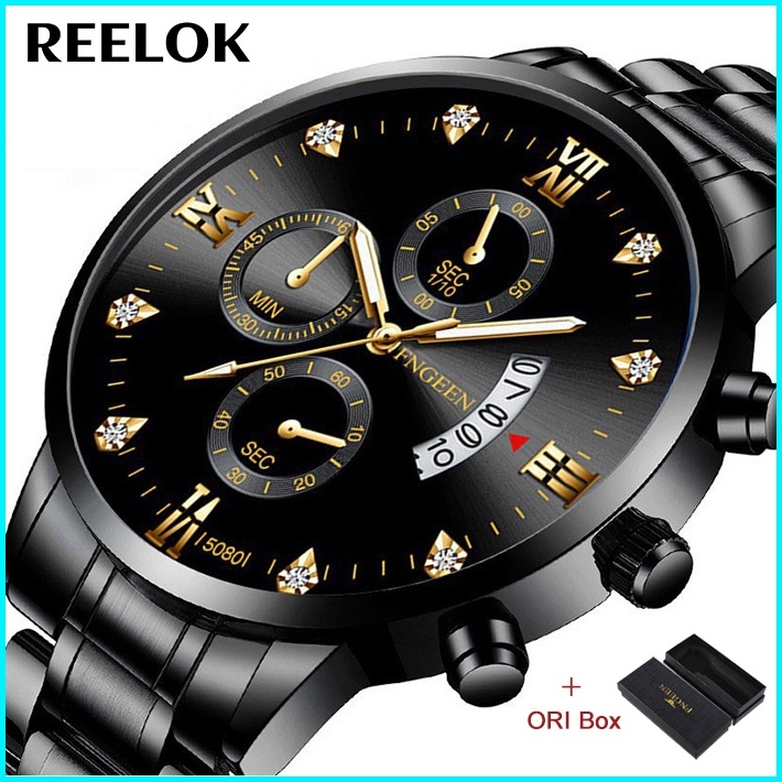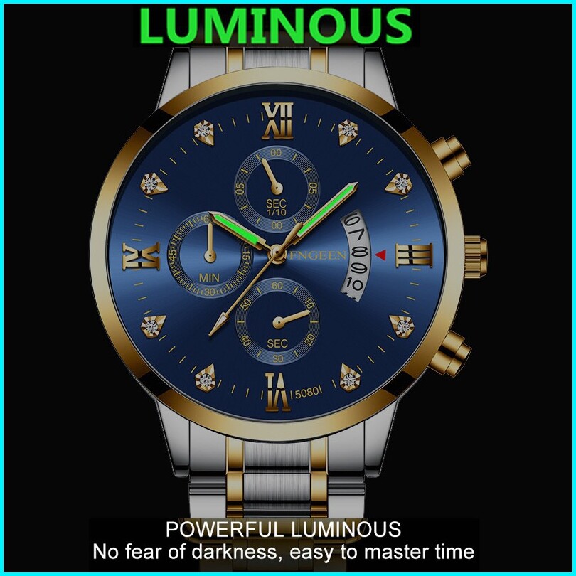 Fngeen 5080 Jam Tangan Pria Luxury Bercahaya Stainless Steel Quartz Original Anti Air Watch Kotak Gratis