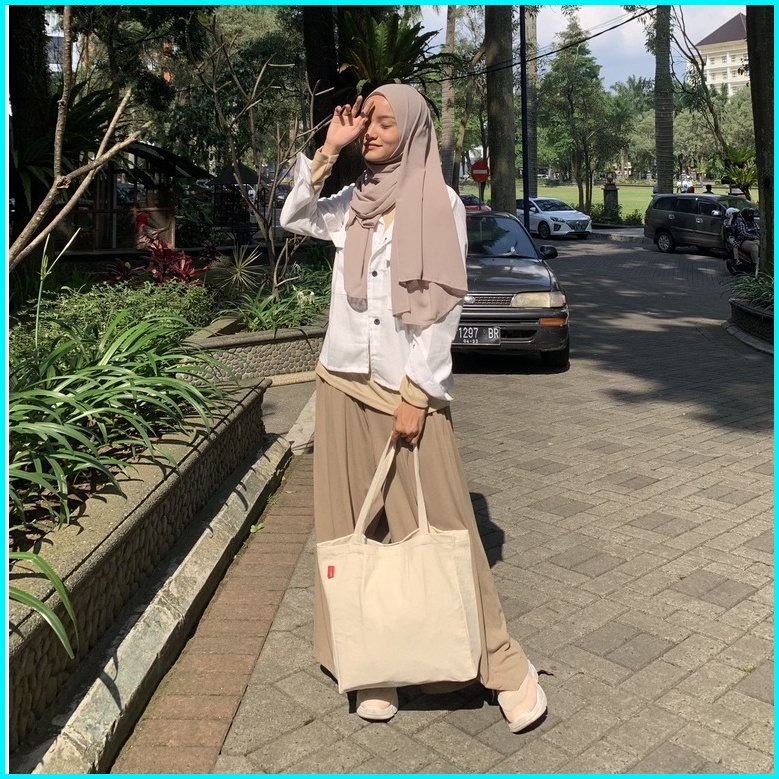 Cream Tote Bag Kanvas Tebal Velcro Tas Canvas Polos Lukis Sablon