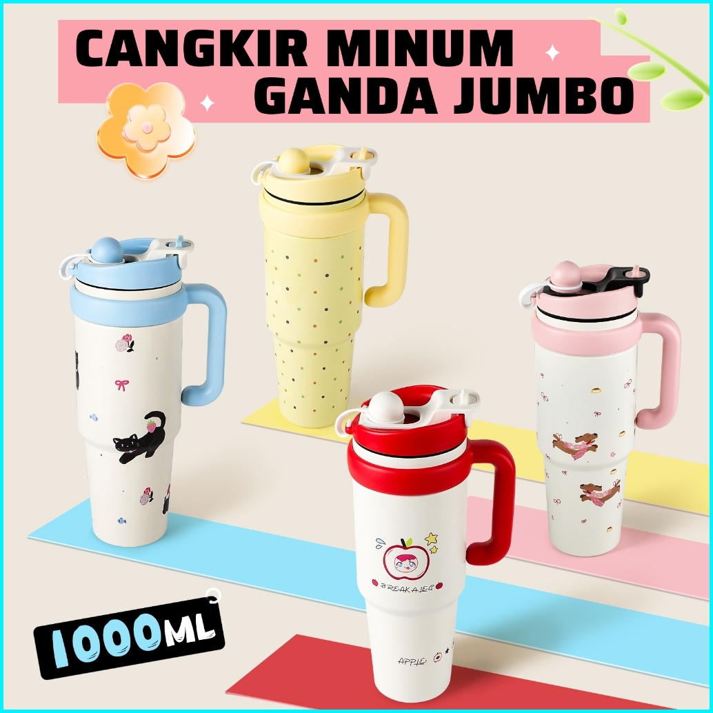 Tumbler Stainless Vacuum 1000ml Portable Thermos Botol Minum Besar Aesthetic Anak Laki Laki