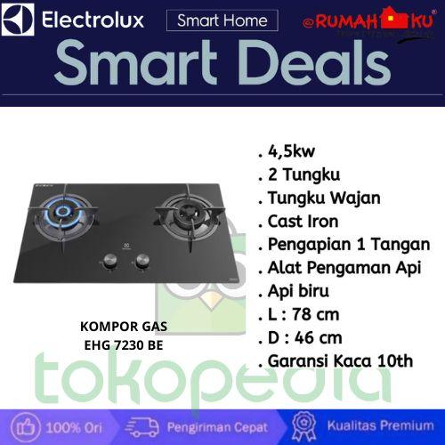 Electrolux Kompor Gas EHG7230BE 2 Tungku 4,5kW Pemantik Pulse Elektronik Garansi Resmi Hitam Kaca