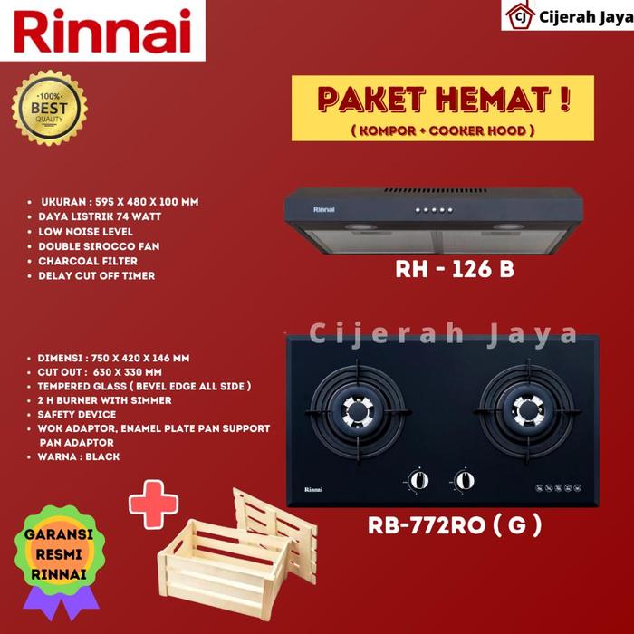 RINNAI RB 772 ROG + RH 126 B PAKET KOMPOR GAS TANAM RB-772ROG + COOKER HOOD/TUDUNG HISAP KOMPOR