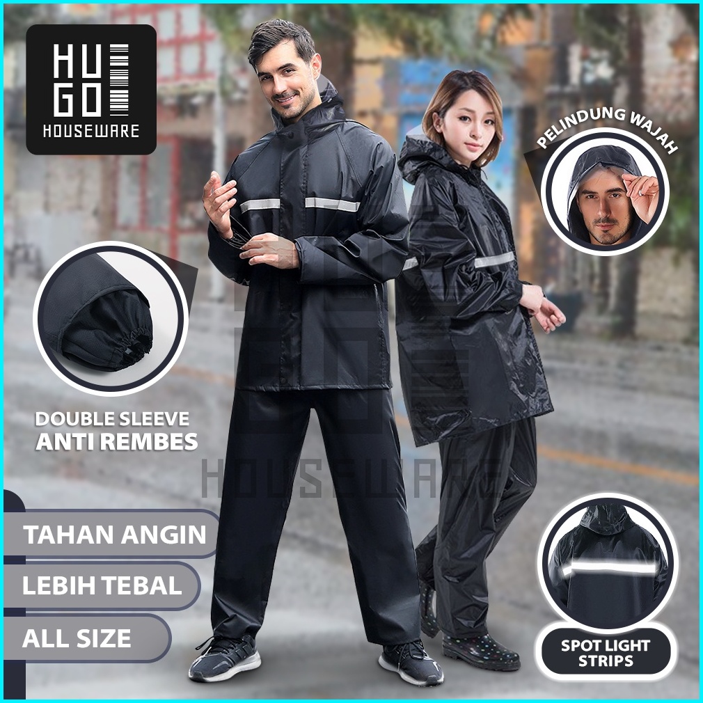 Jas Hujan Setelan Premium All Size Pria Wanita Tebal Anti Angin Hugo