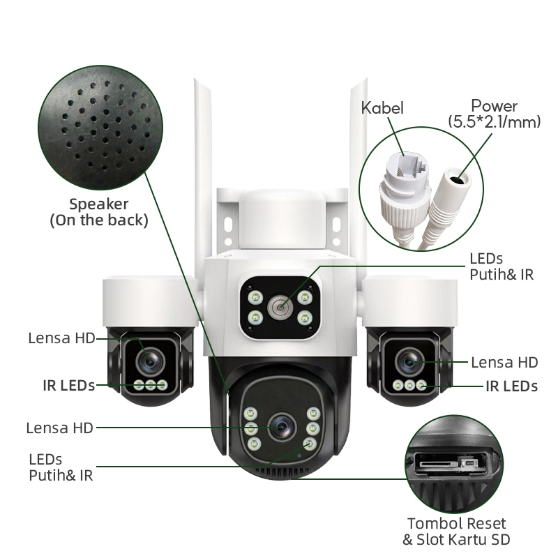 Cctv Wifi Outdoor 3 Lensa Putar 360° Pantau Rumah Hp Malam Jelas Audio Dua Arah Tahan Hujan Garansi