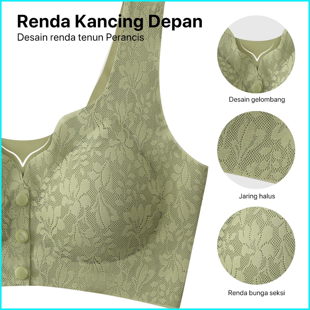 Greney-l.w.l- Paket Bra 2 Pcs Rompi Renda Kancing Depan Pakaian Dalam Push Up Bra Wanita Sport Tanpa Kawat Busa-89697