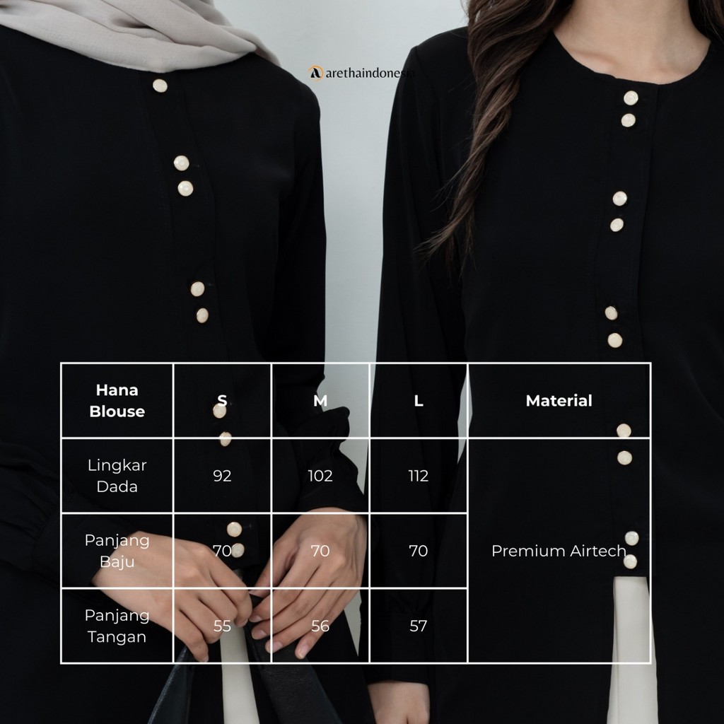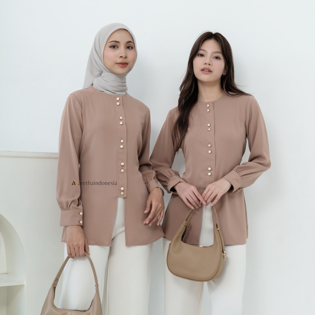 Hana Blouse Aretha Indonesia | Atasan Wanita Lengan Panjang - Kemeja Kerja Malaya Hijab | Kebaya Modern Premium