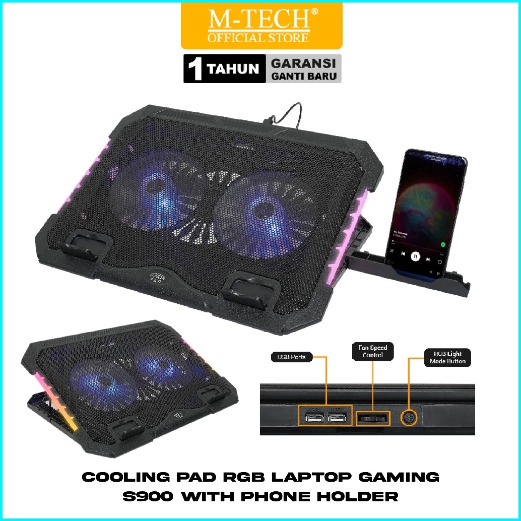 Mtech Cooling Pad Laptop Gaming Rgb S900 With Phone Holder Kipas Pendingin Laptop Silent