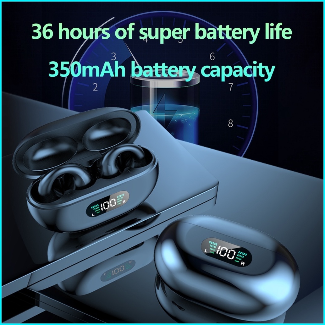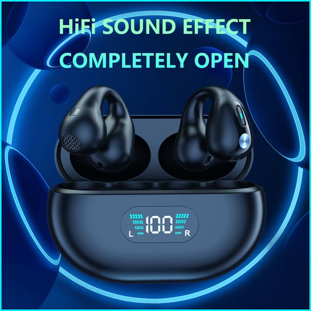Headphone Bluetooth 5.3 Tws Earphone Konduksi Tulang Desain Penjepit Telinga Kontrol Sentuh Earbud Led Headset