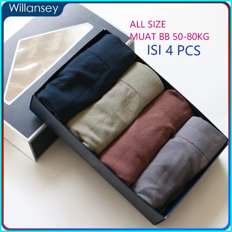 Set Kotak 4pcs Boxer Pria Polos Celana Dalam Yang Nyaman Bernapas Impor High Quality Cd Pria