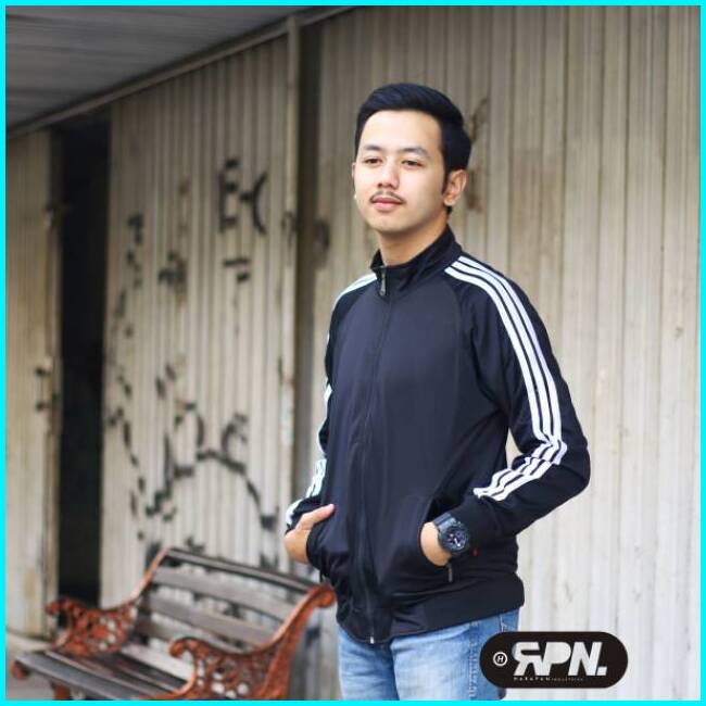 Jaket Olahraga Tracktop Jersey Saku Ada Resleting Bahan Tidak Panas