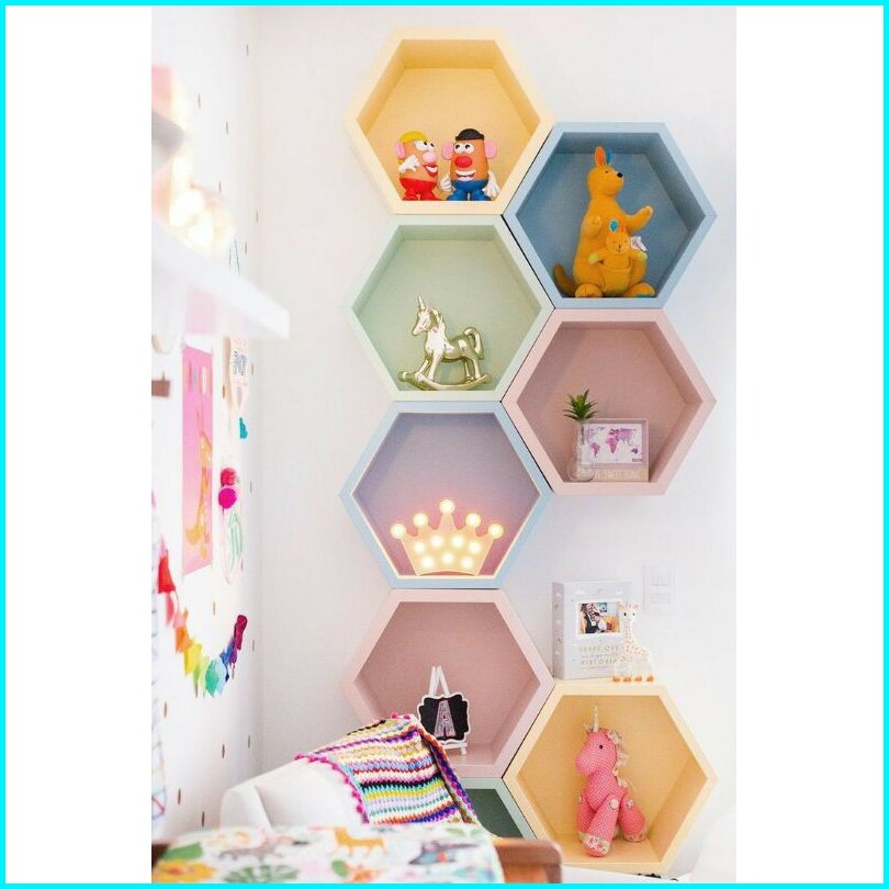 Rak Dinding Tempel Size Besar Aesthetic Hexagonal