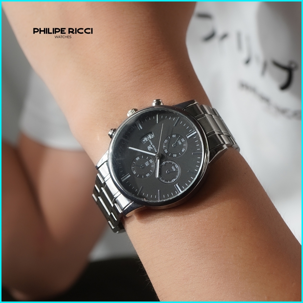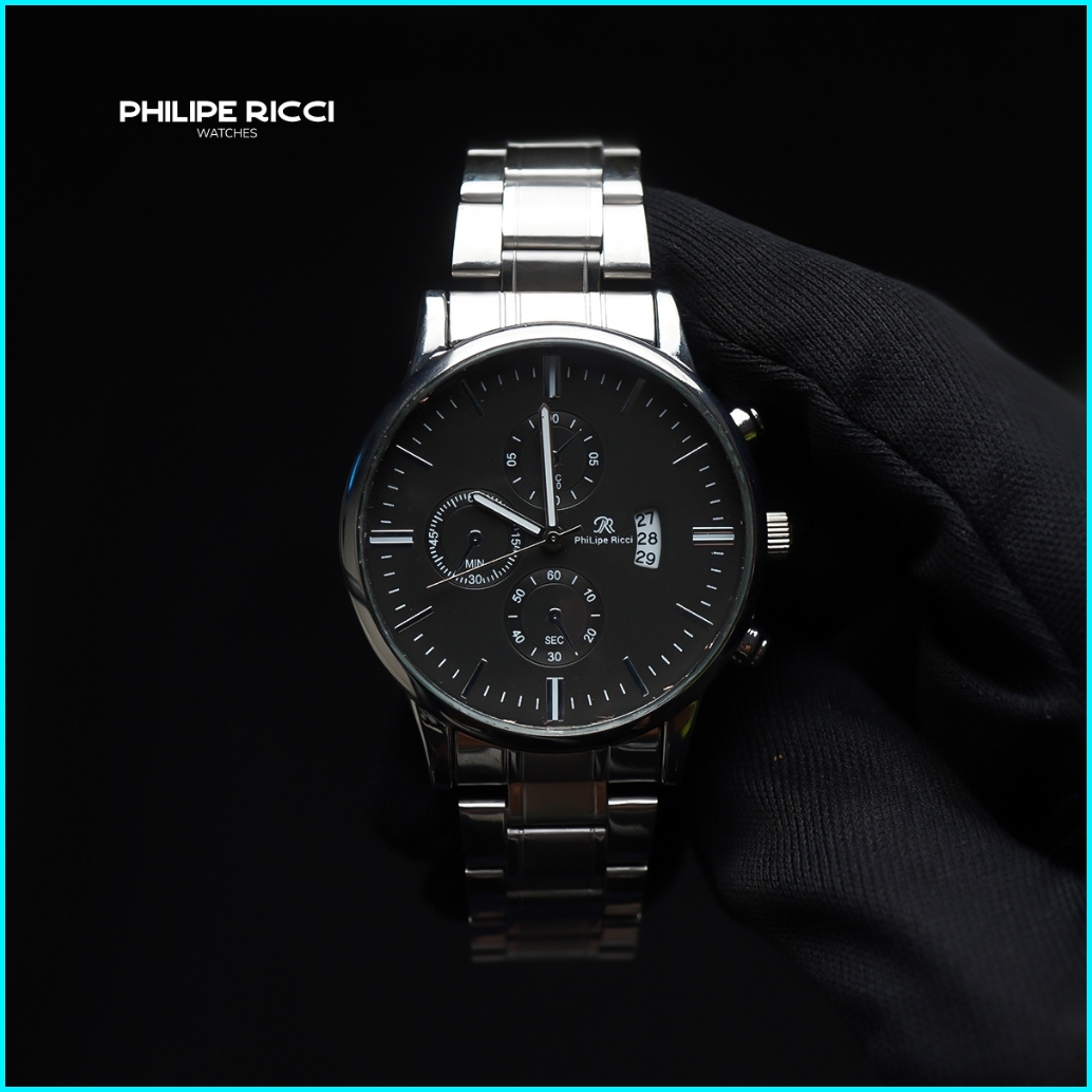 Philipe Ricci Jam Tangan Pria Rantai Analog Quartz Trendy Hitam Ori Simple 7352 Men Watches Free Box