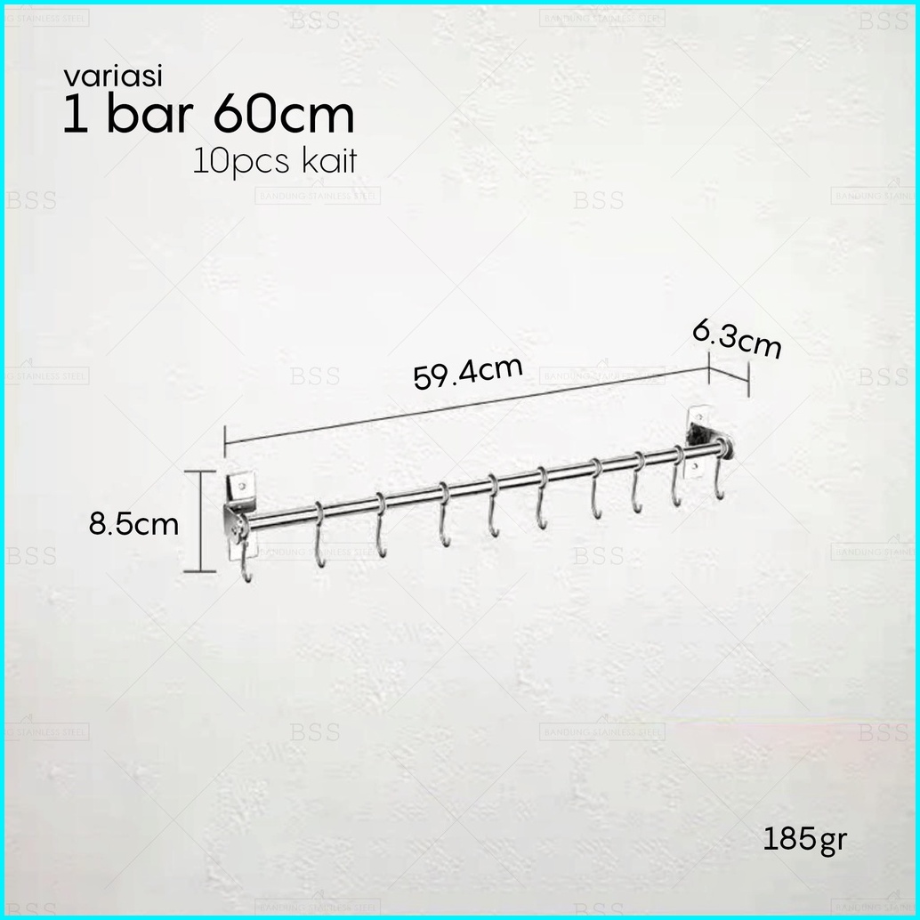 Kitchen Bar 60cm 80cm 100cm Single Double Gantungan Rak Dapur Pisau Panci Stainless