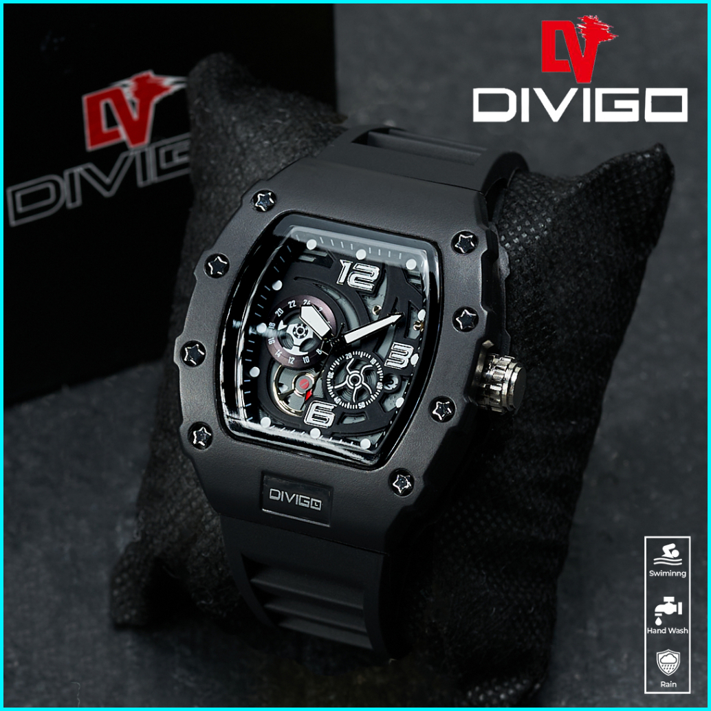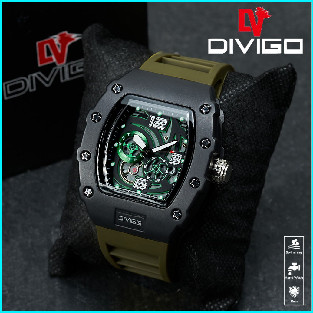 Jam Tangan Divigo Rm Dv-2304 Analog Sport Original Tahan Air Strab Rubber Tanggal Aktif