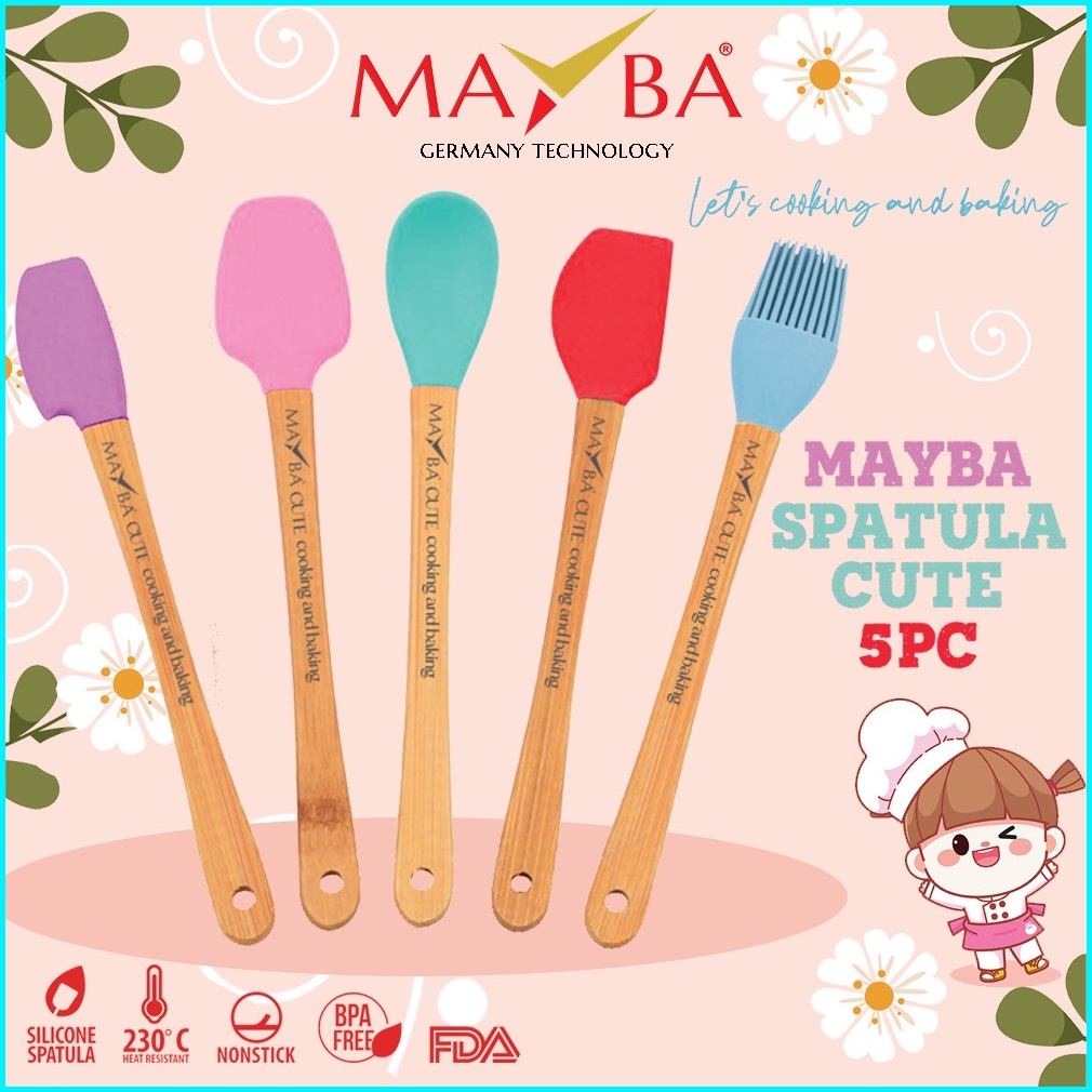 Mayba Set Sutil Spatula Set 5 Pcs Cute Mayba Bpa-free Alat Masak Codet Sodet Tebal Perlengkapan Pelengkap Panci Mpasi