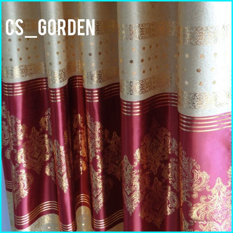 Gorden Pintu Dan Jendela Minimalis Merah Crem Print 5 Gelembung Model Semokring Tinggi 225 Cm