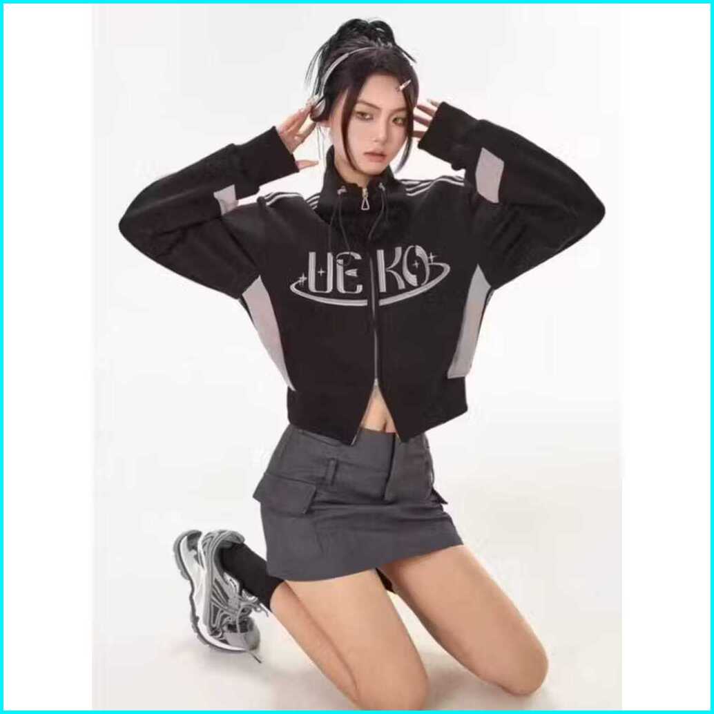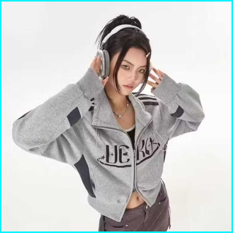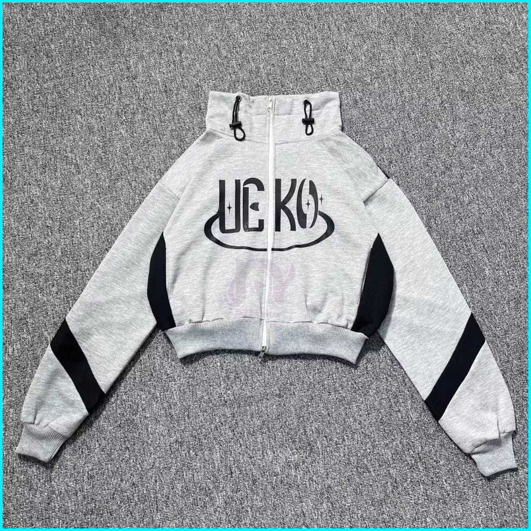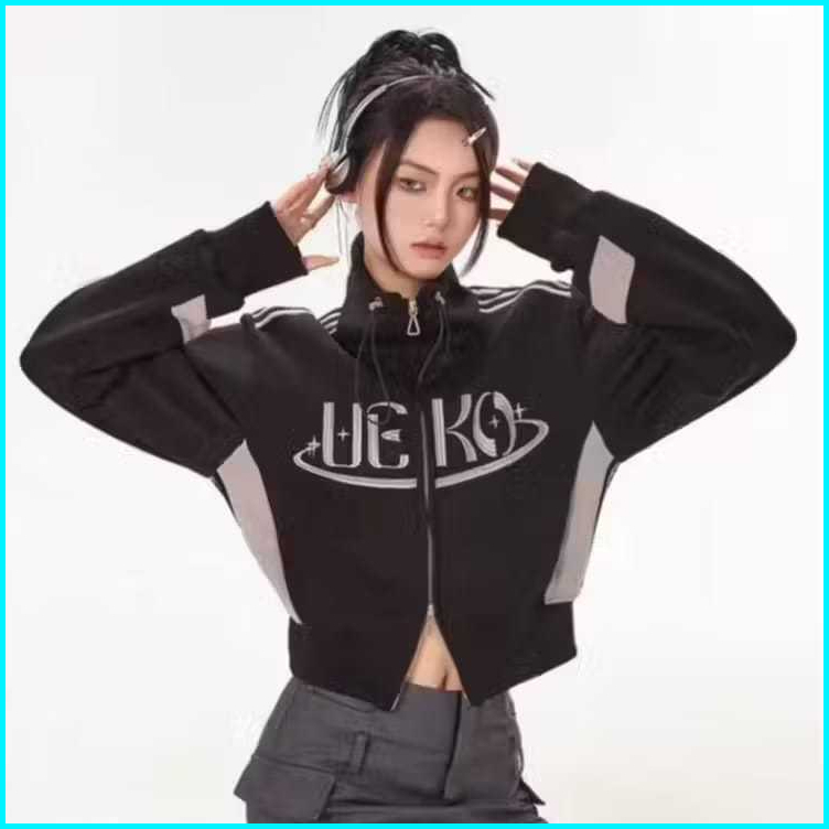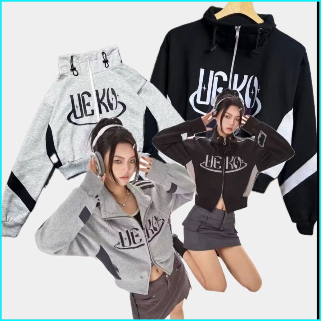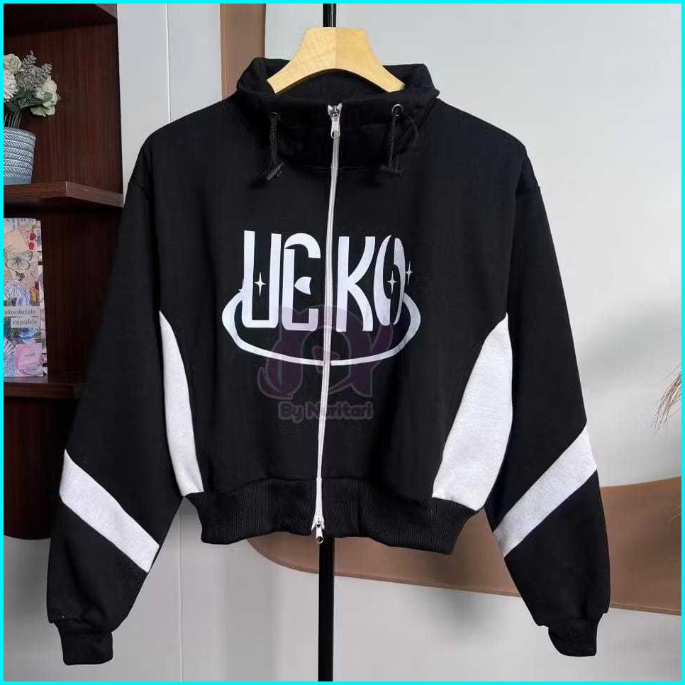 Veko Jacket Turtleneck Double Zipper Atasan Outwear Crop Top Wanita - Jacket Crop Wanita Korean