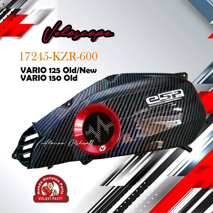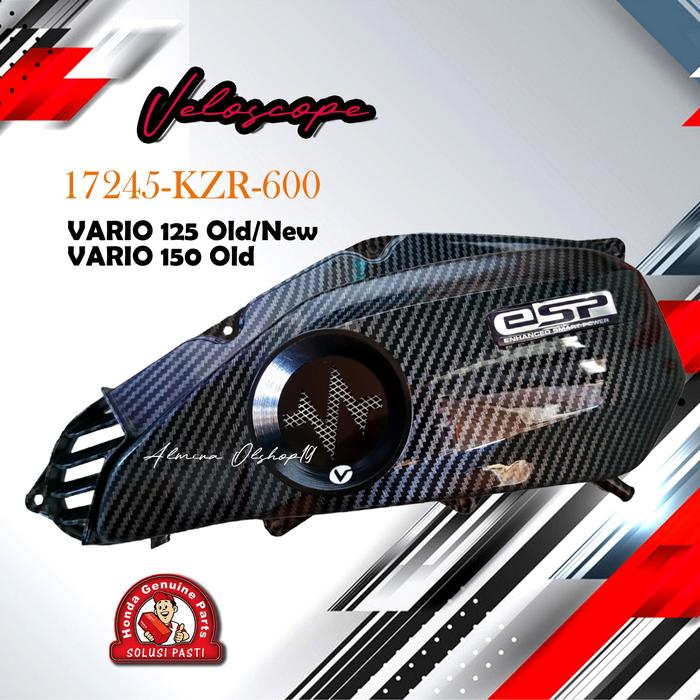 VELOSCOPE CARBON CELUP SC56 TUTUP FILTER VARIO 125 OLD NEW VARIO 150 OLD MODEL DETAK CORONG PENDEK EMBLEM ESP HITAM - BL