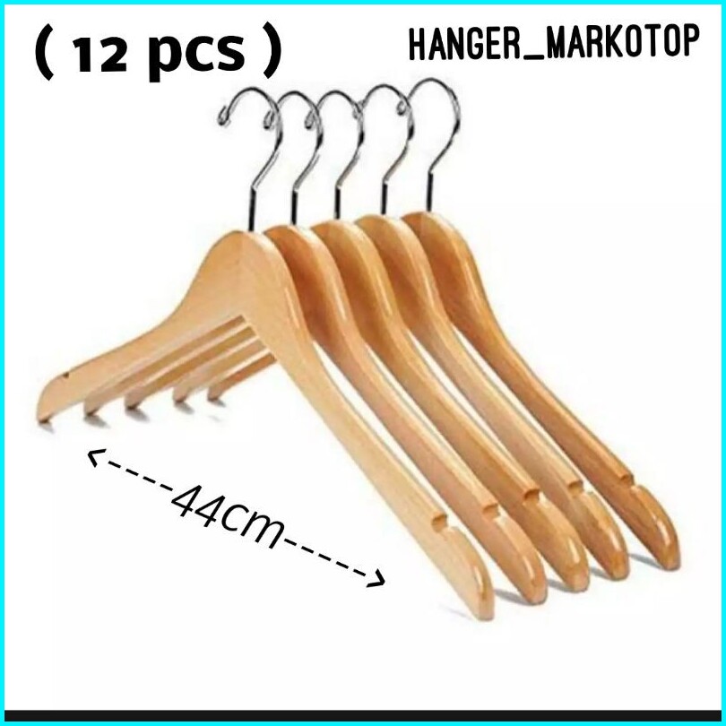 Hanger Kayu Dewasa Wood Warna Natural 1 Lusin Isi 12pcs