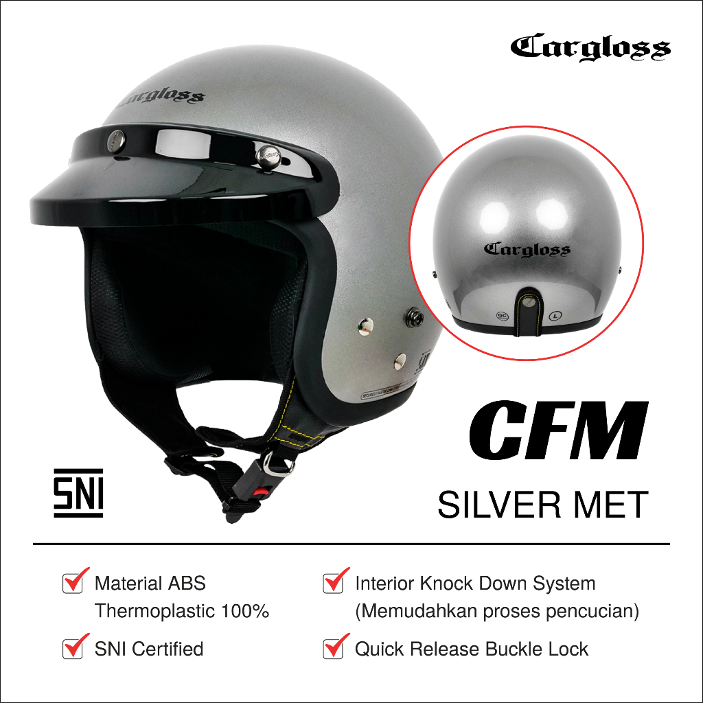 Cargloss CFM Retro Helm Half Face - Silver Met Glossy