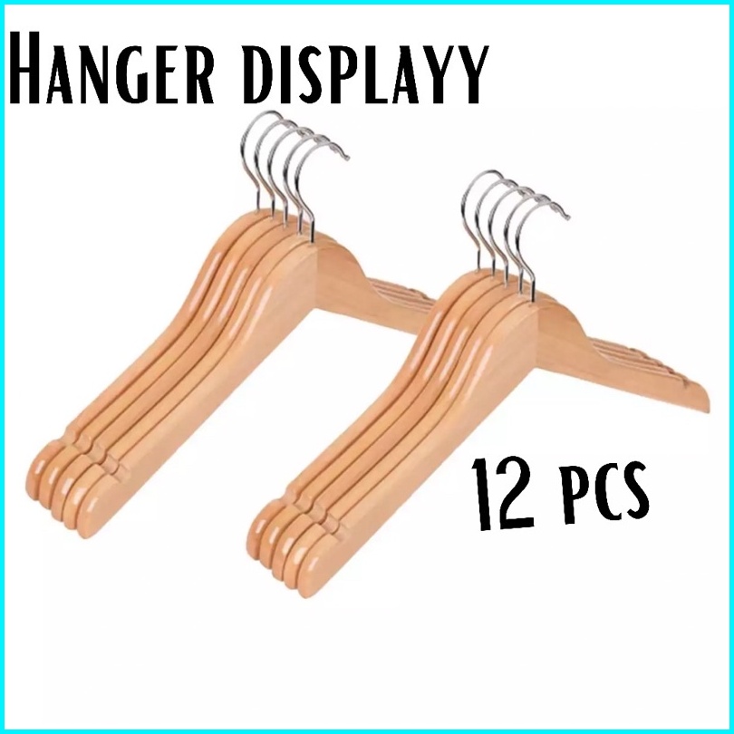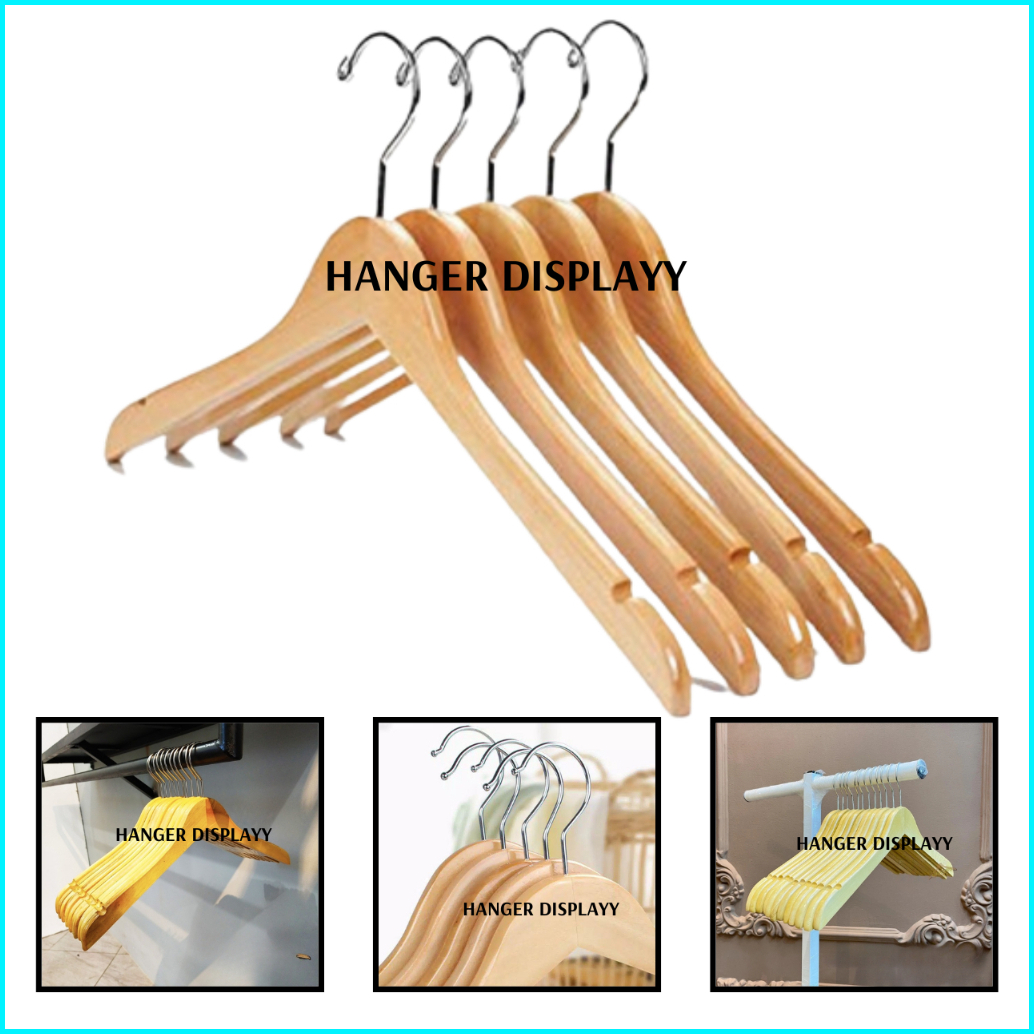 Hanger Kayu Dewasa Wood Warna Natural 1 Lusin Gantungan Baju Butik Distro Hanger Toko 12 Pcs