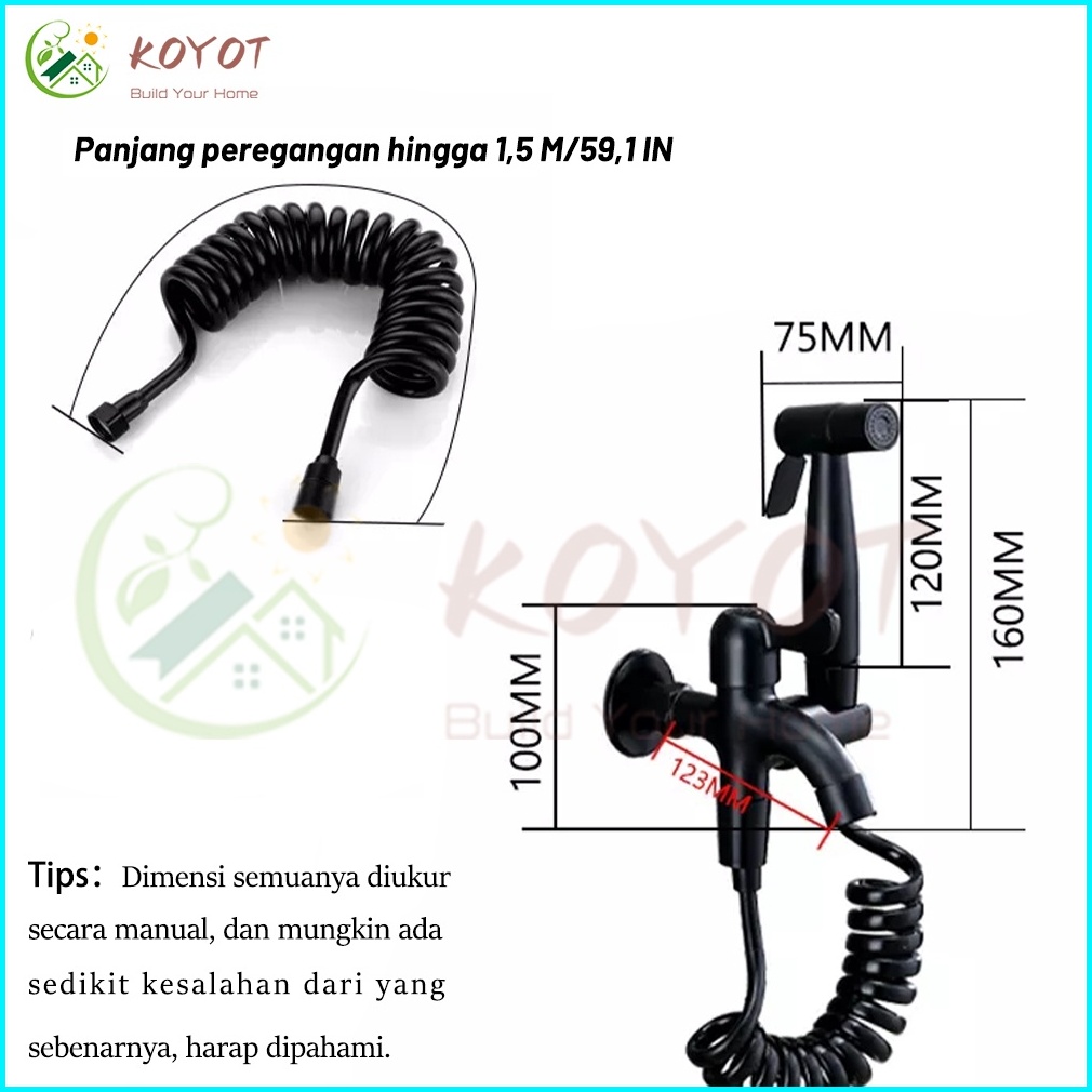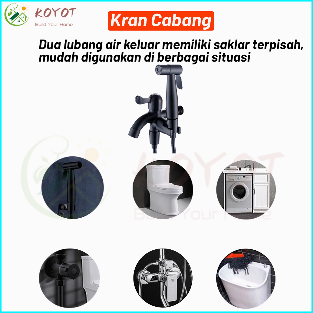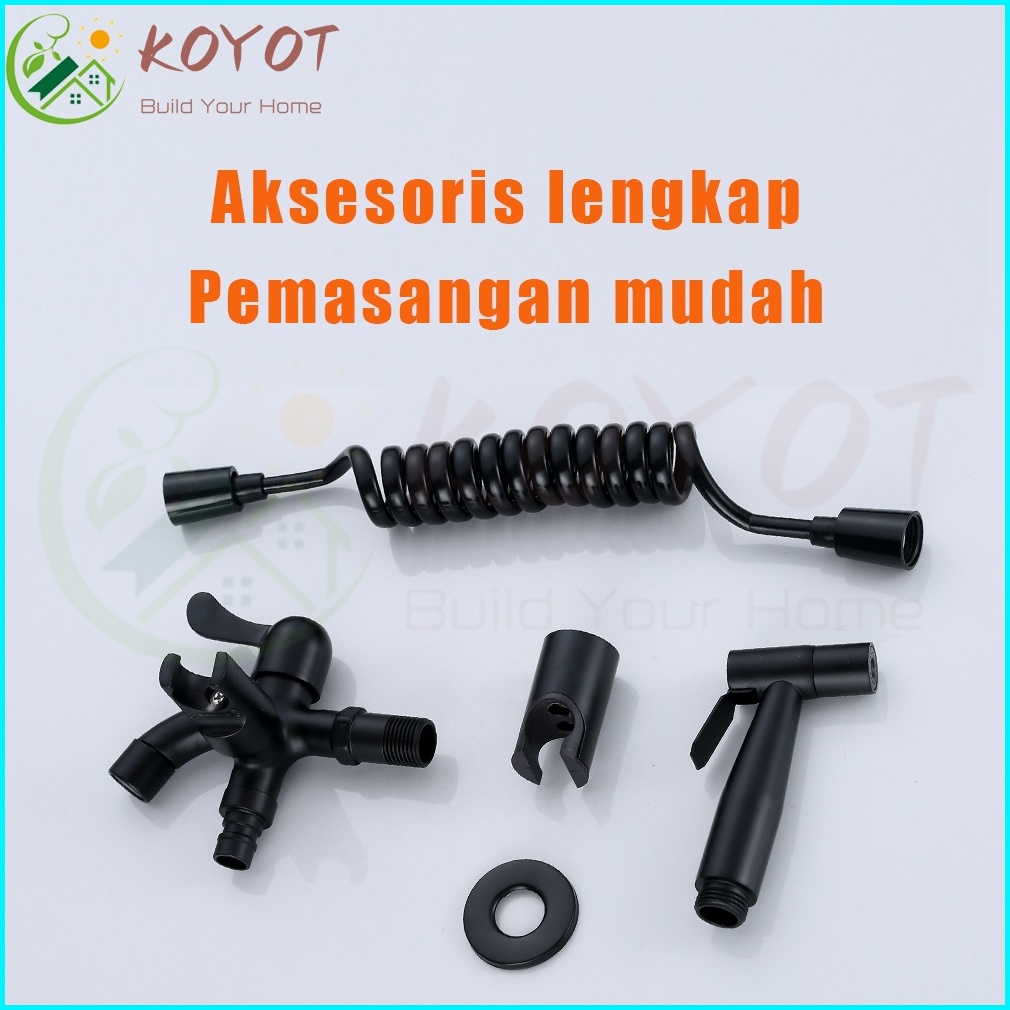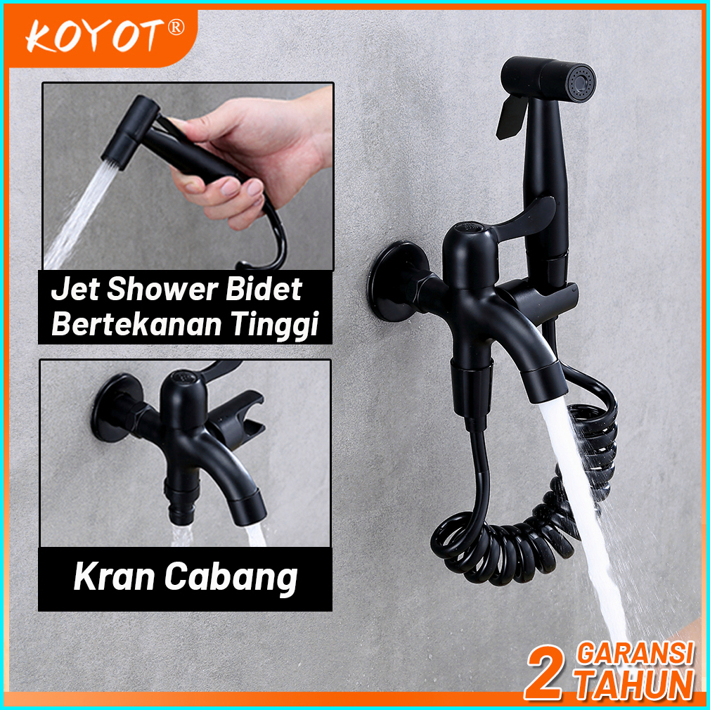 Koyot Kran Cabang Sus 304 Dan Jet Shower Toilet Hitam Matte 1 2 Inch Dengan Selang 1.5m Kran Air Double Kran Washing Mac