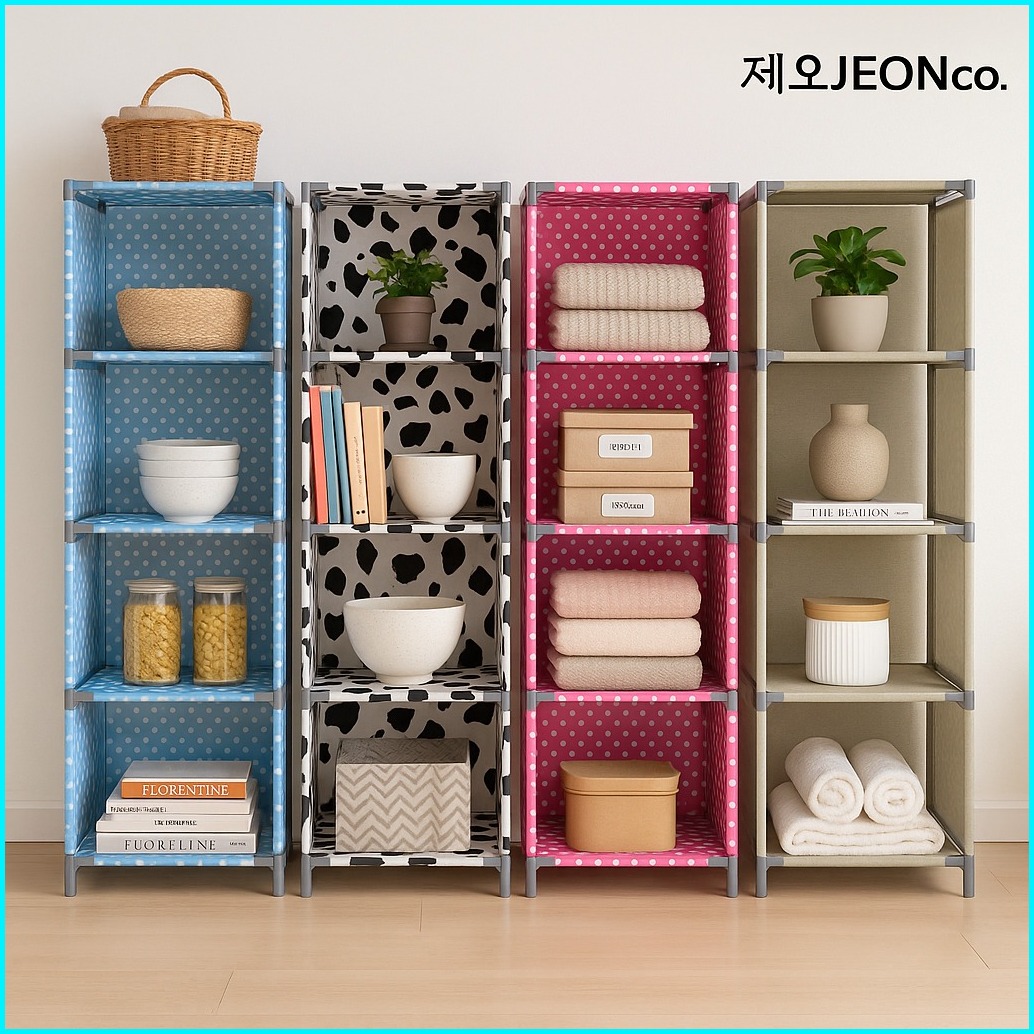 Rak Buku 5 Tingkat 4 Susun Kain Portable Lemari Tempat Penyimpanan Baju Helm Bermotif Serbaguna