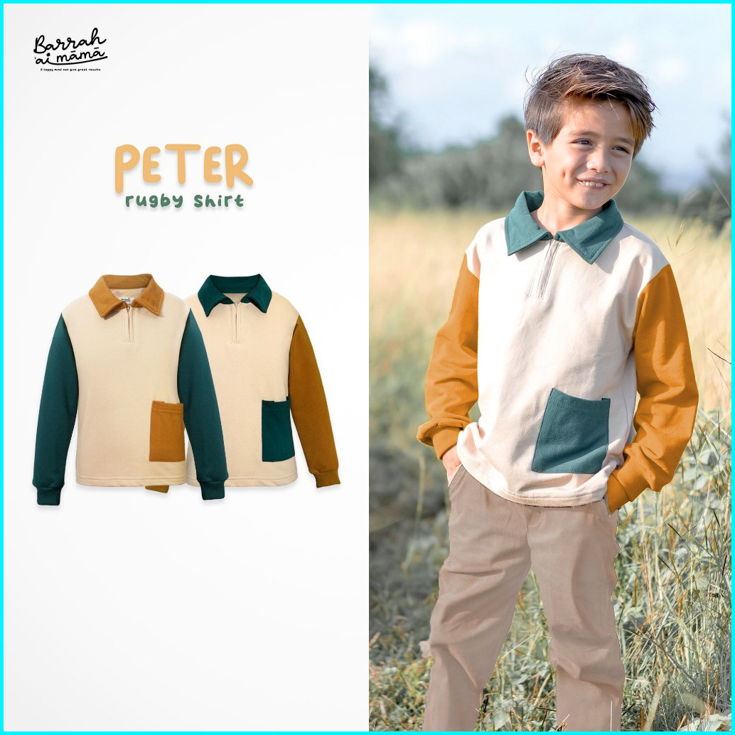 Barrahaimama - Polo Shirt Anak Laki Laki Baju Kerah Rugby Lengan Panjang Bahan Katun Polos