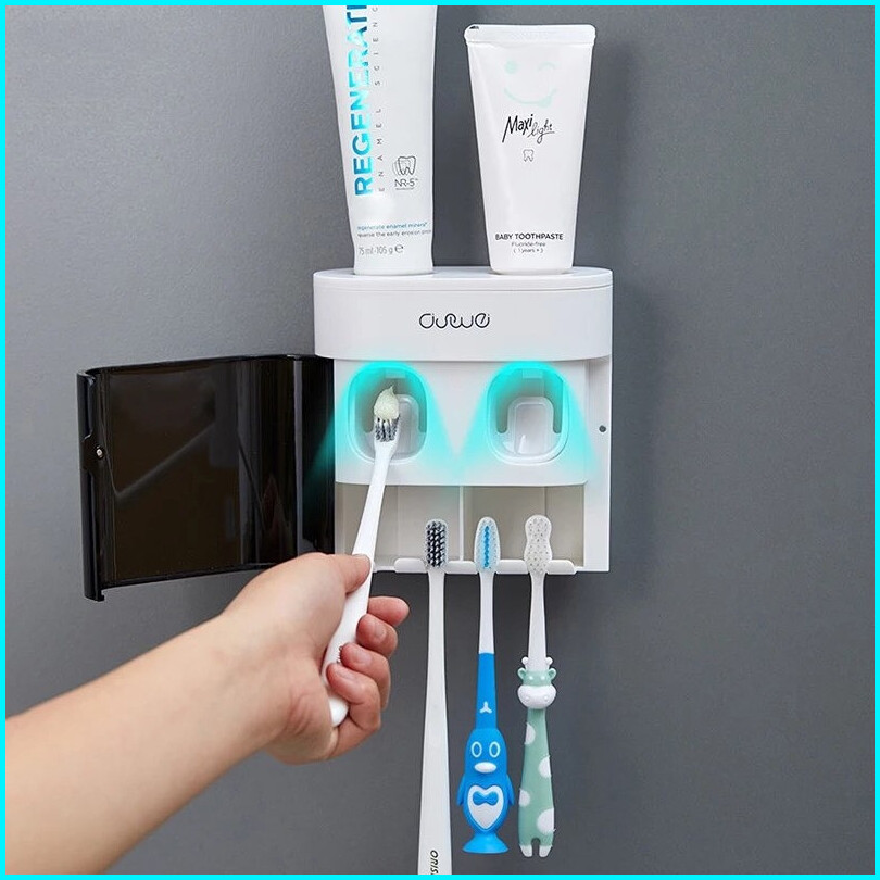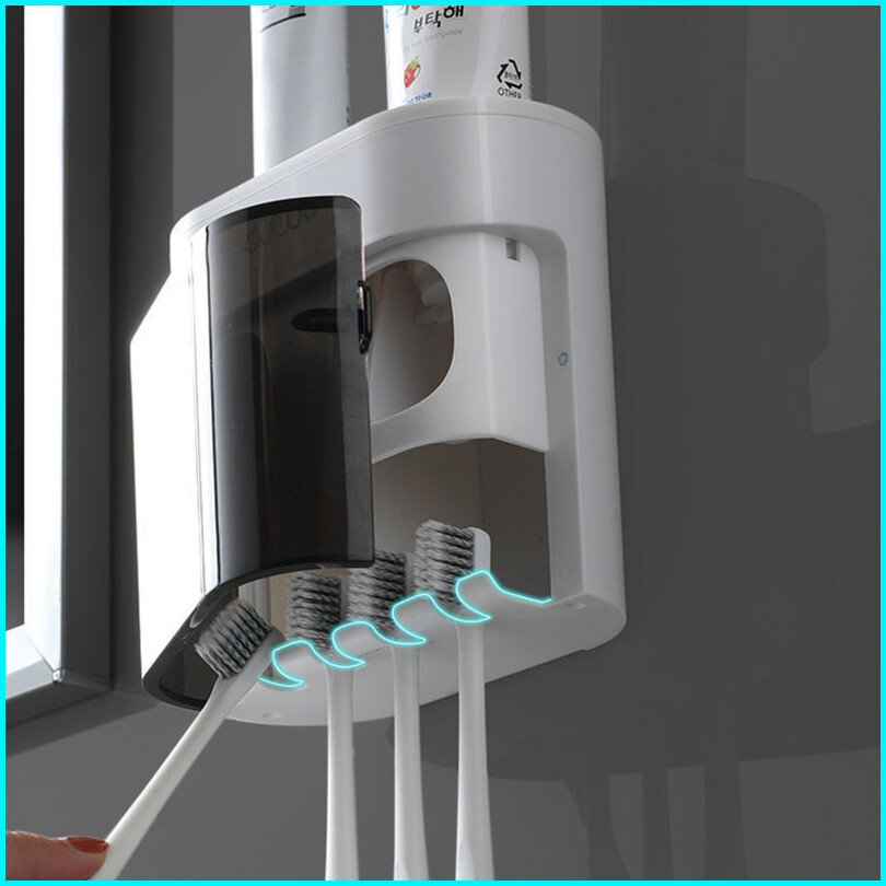 Dispenser Odol Dan Tempat Sikat Gigi Dengan Penutup Anti Bakteri Rak Tempat Sikat Gigi Smart Automatic Toothbrush Steril