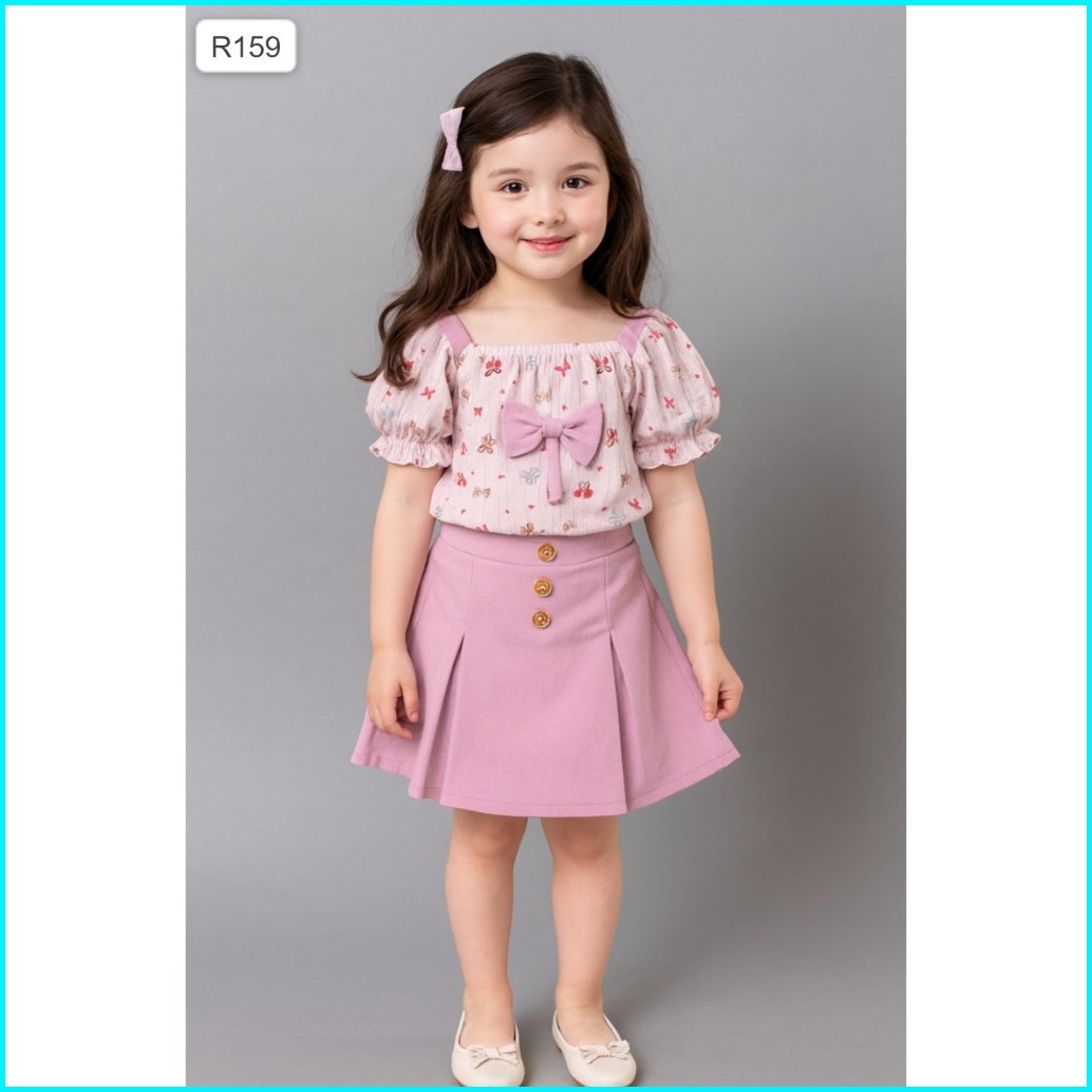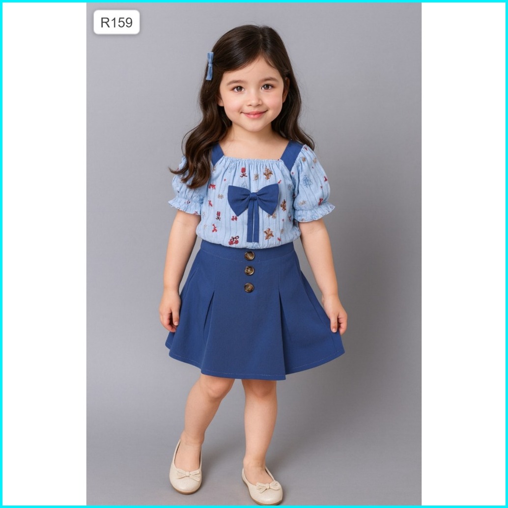 D4 Setelan Rok Anak Perempuan Akari R159 Bunga-bunga