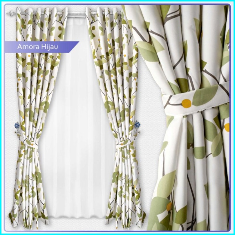 Gorden Jendela Dan Pintu Minimaalis Murah Motif Amora Hijau Smokring 12 Ring