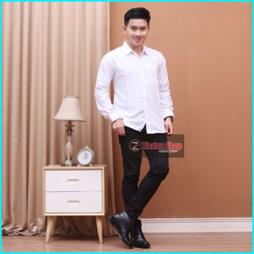 Kemeja Putih Polos Pria Lengan Panjang Formal Kerja S M L Xl Xxl