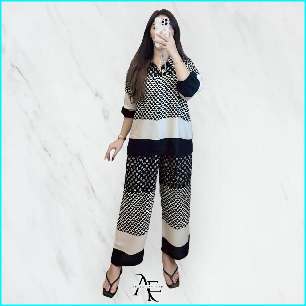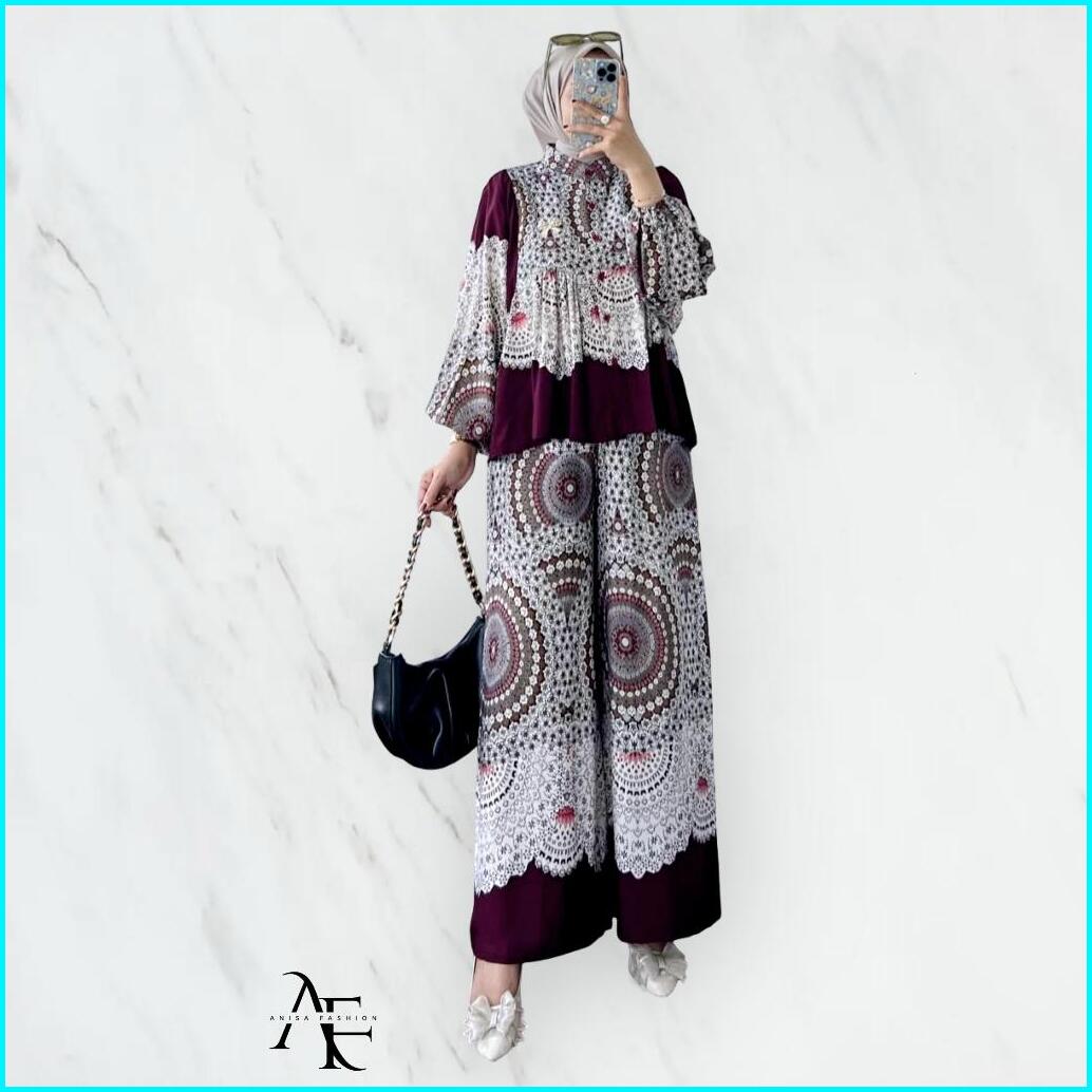 Fatema Set - One Set Fatema Tunik Rayon Motif Bunga - Setelan Tunik Bunga - One Set Wanita Terbaru
