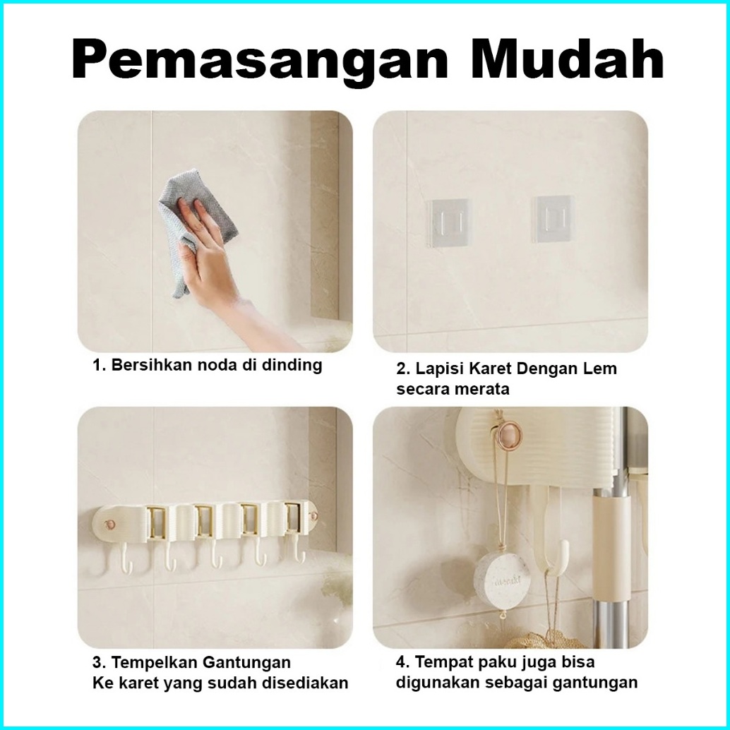 Penjepit Gantungan Sapu Pel Dinding Holder Mop Serbaguna Gantungan Dinding Tanpa Paku Terbaru Wd-1