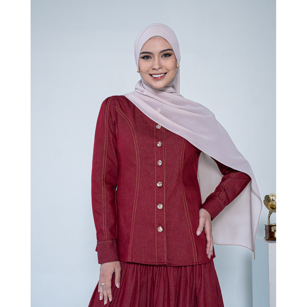 Evolvere - Alana fitted Denim Blouse Kekinian ( atasan saja )