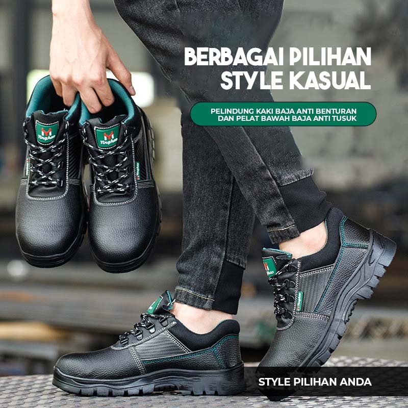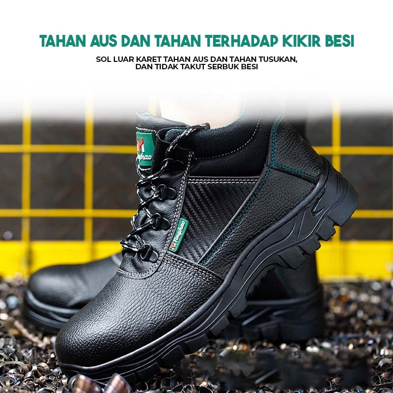 Sepatu Safety Kulit Pria Ujung Besi Baja Si15 Sepatu Safety Waterproof Sepatu Kerja Outdoor Proyek