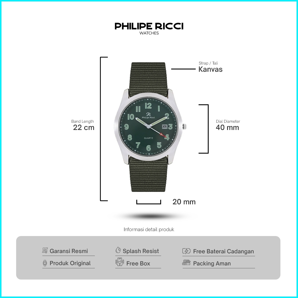 Philipe Ricci Jam Tangan Pria Kanvas Keren Simple Terbaru Cowok Kecil 7662 Men Watches Free Box