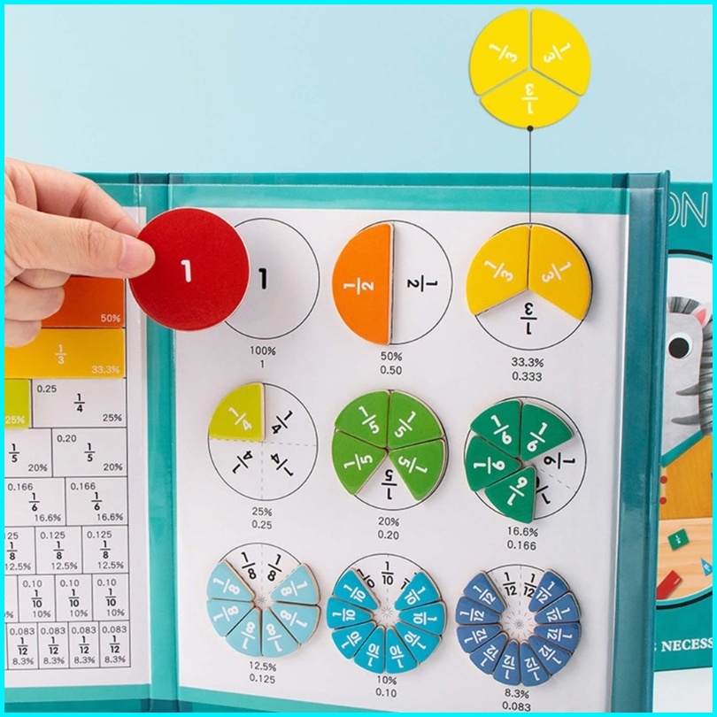 Fraction Wooden Toys Magnetic Travel Game Mainan Anak Alat Peraga Belajar Pecahan