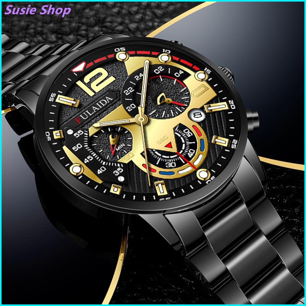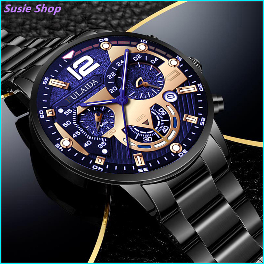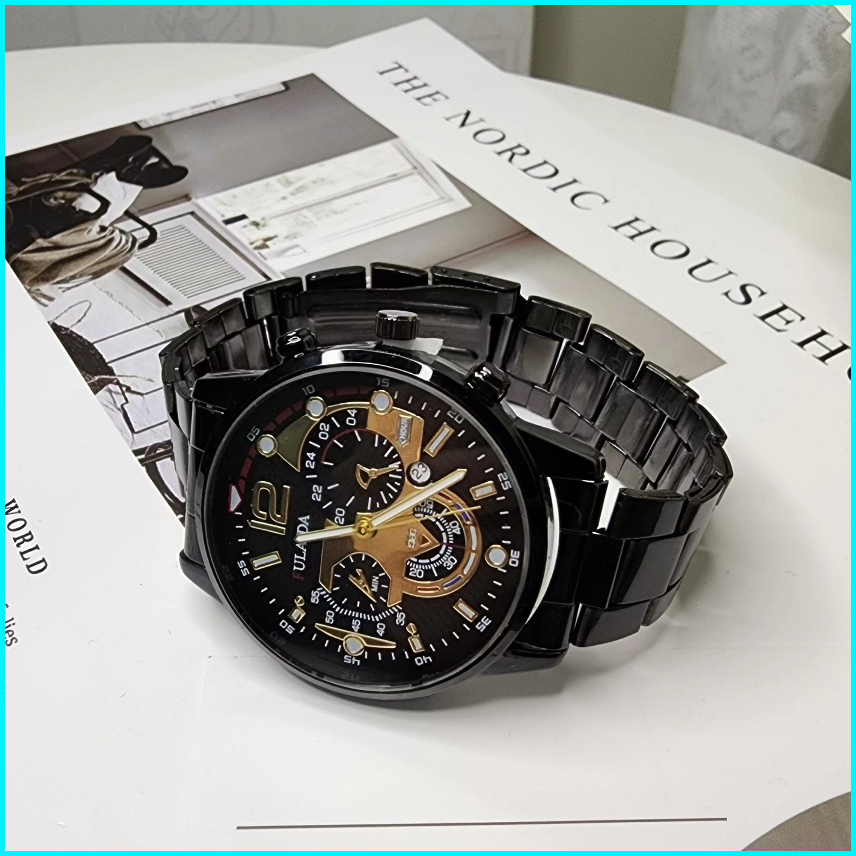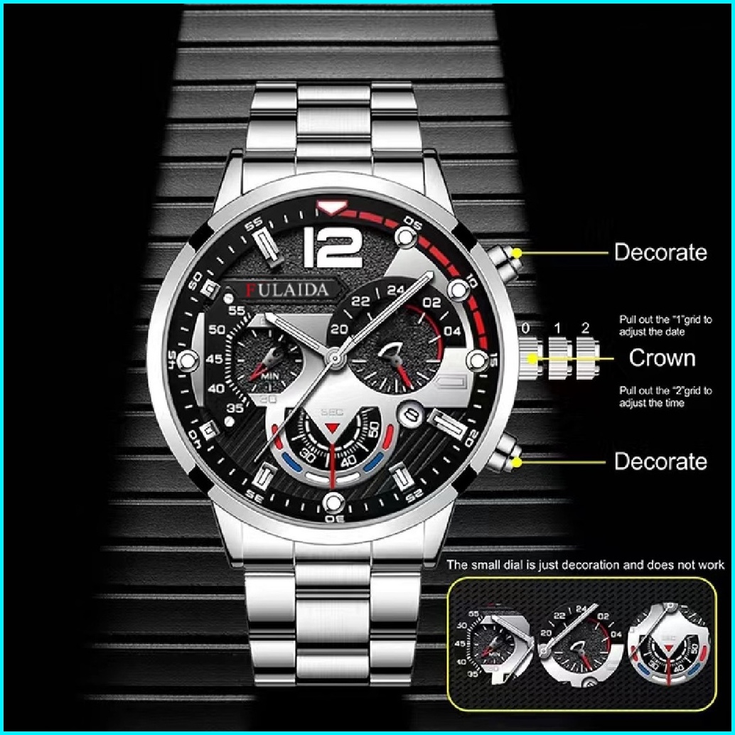 Jam Tangan Pria Anti Air Original Luxury Bisnis Quartz Stainless Steel Watch Kotak Gratis 001