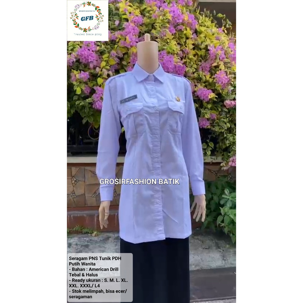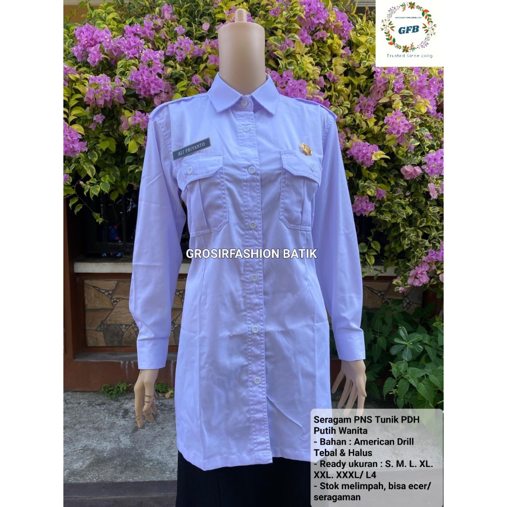 Seragam PNS Tunik PDH Putih Wanita Terbaru. Seragam PNS ASN Tunik PDH Putih Cewek. Seragam PNS Pemda ASN PPPK PDH Putih terbaru dan termurah bisa by GROSIRFASHIONBATIK