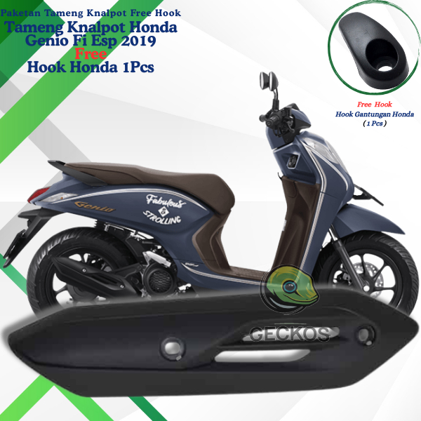 Cover Tutup Tameng Knalpot Honda Genio Di Esp Tahun 2016-2019 Free Gantungan Barang Hook Honda