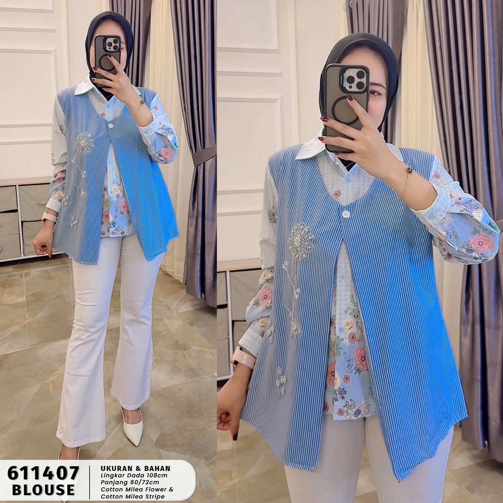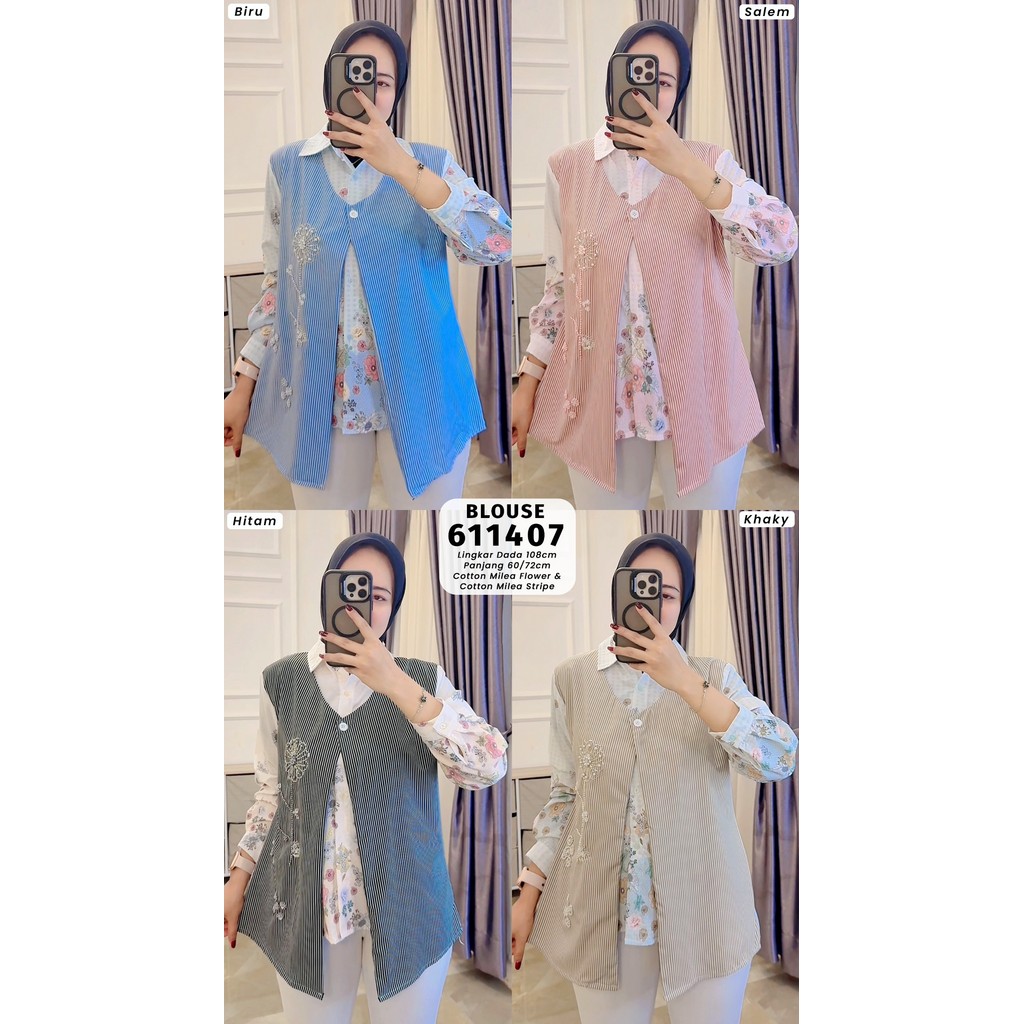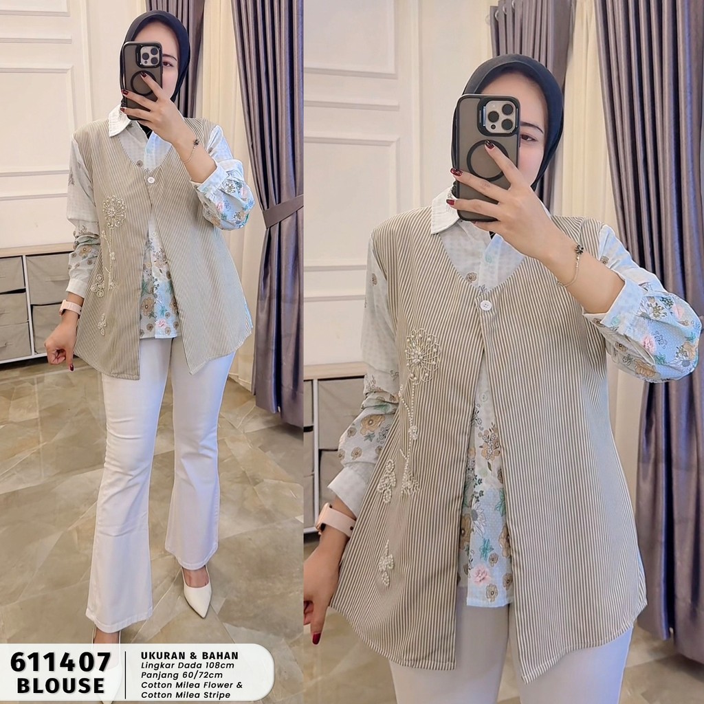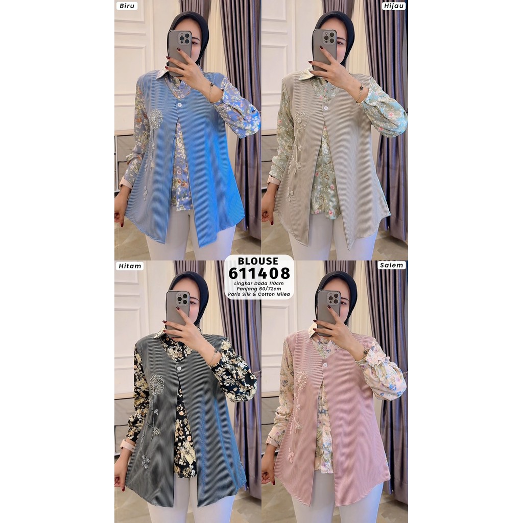 EXTU HERITAGE - Jisso Blouse Elegan Motif Salur Monica Twill | Blouse Muslimah Wanita Busui Friendly - 611319, 611369, 611407, 611408